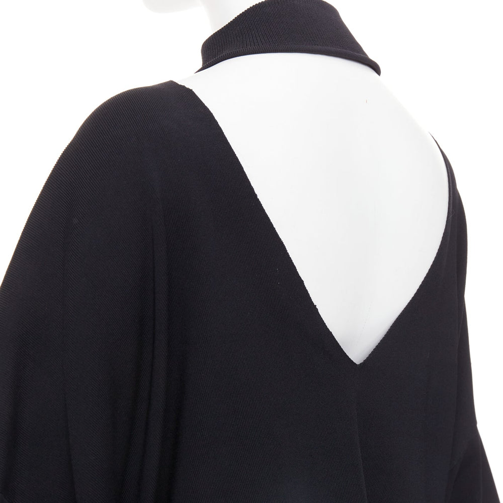 GIVENCHY black draped plunge cowl neck twist rope long sleeves top