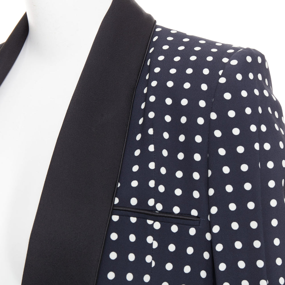 HAIDER ACKERMANN Runway black white polka dot long satin lapel blazer FR36 S
