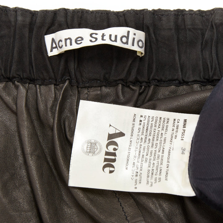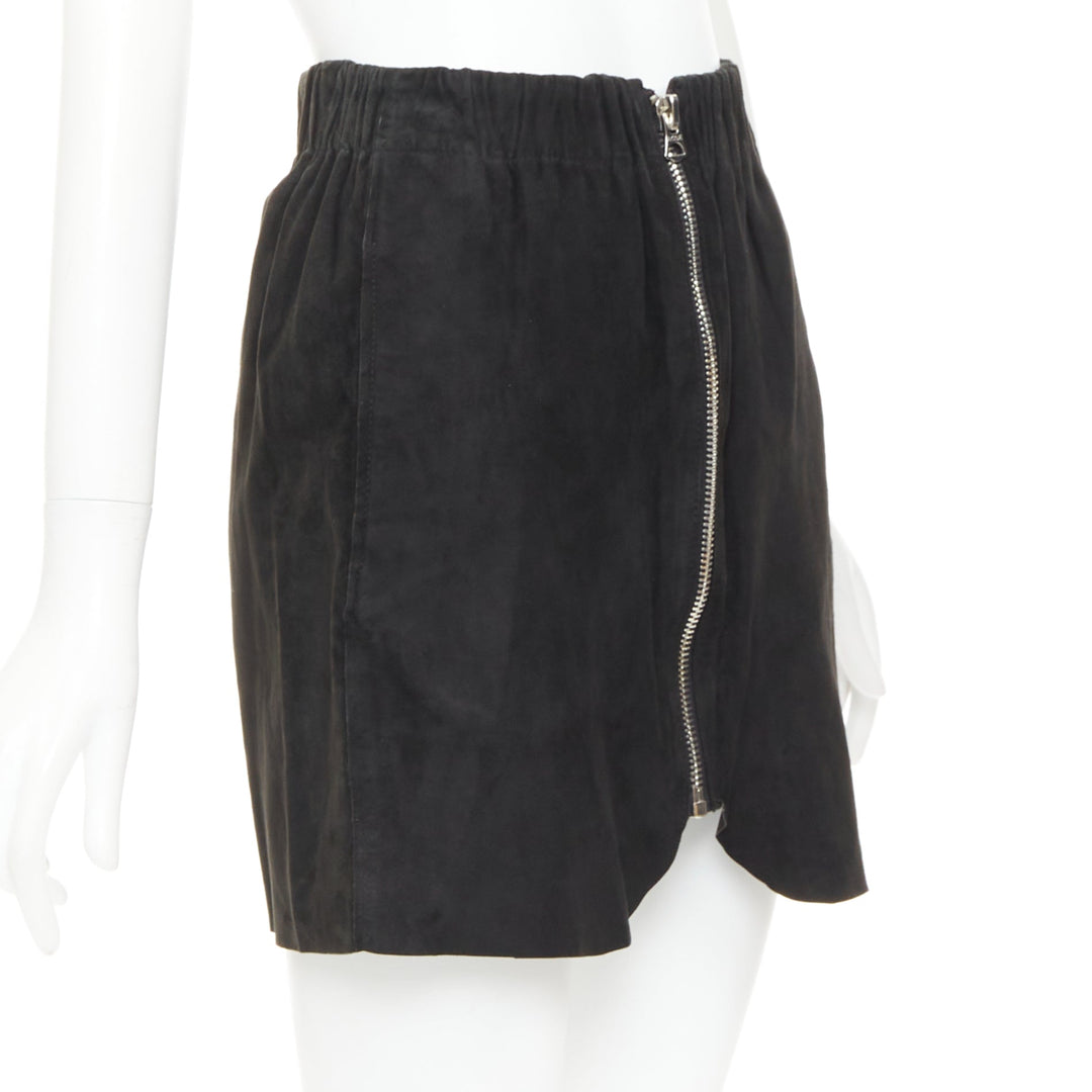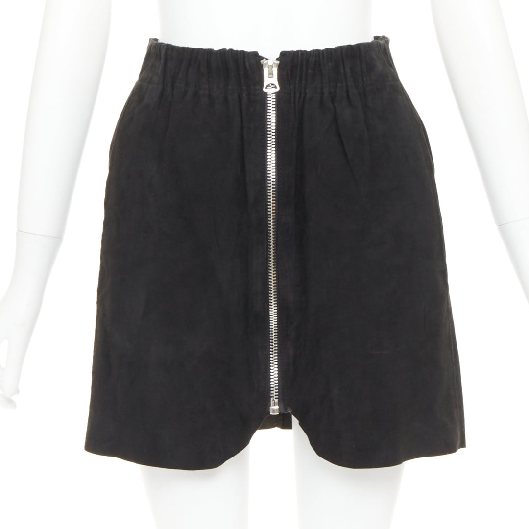 ACNE STUDIOS 2014 Mina black lamb suede leather zip front skirt FR34 XS
