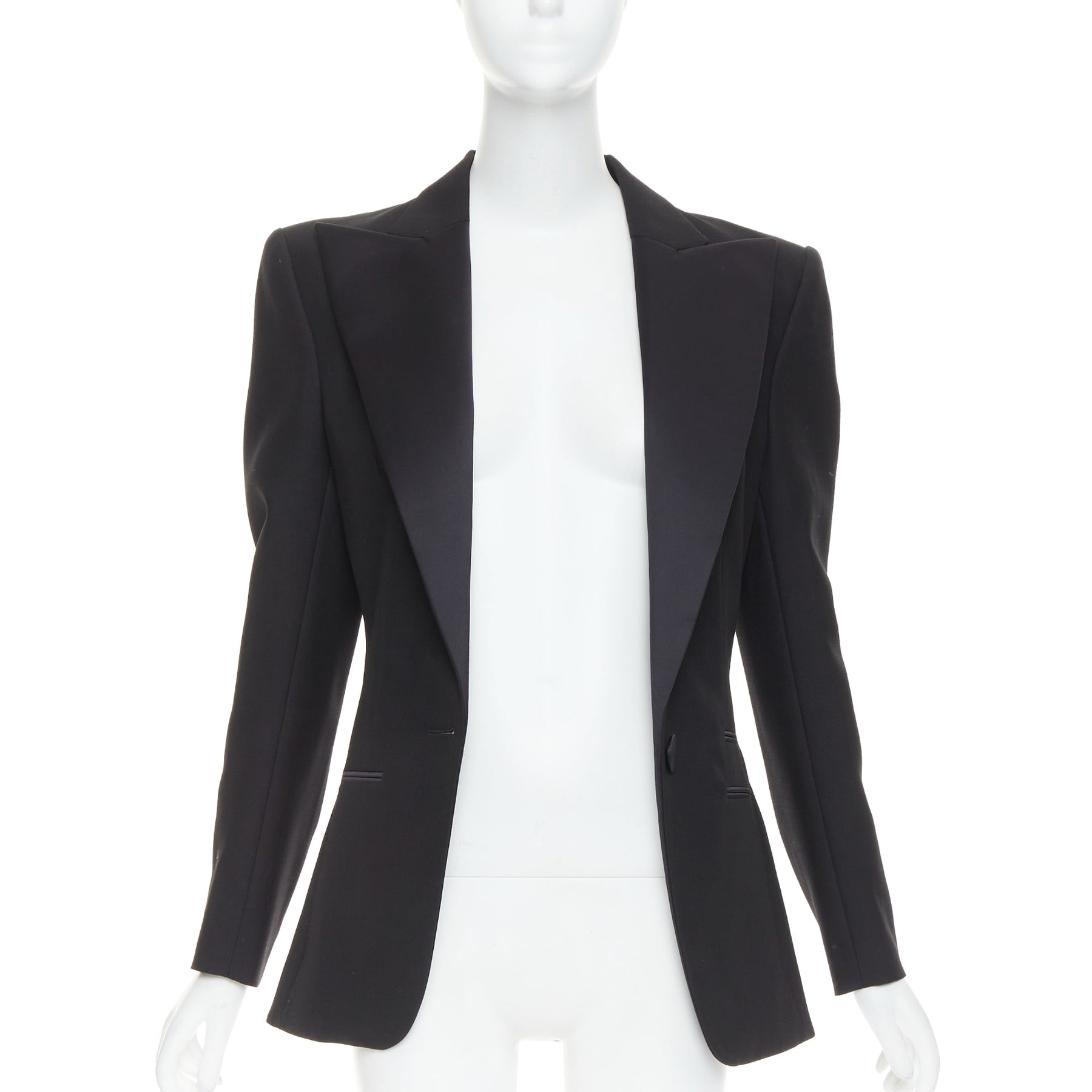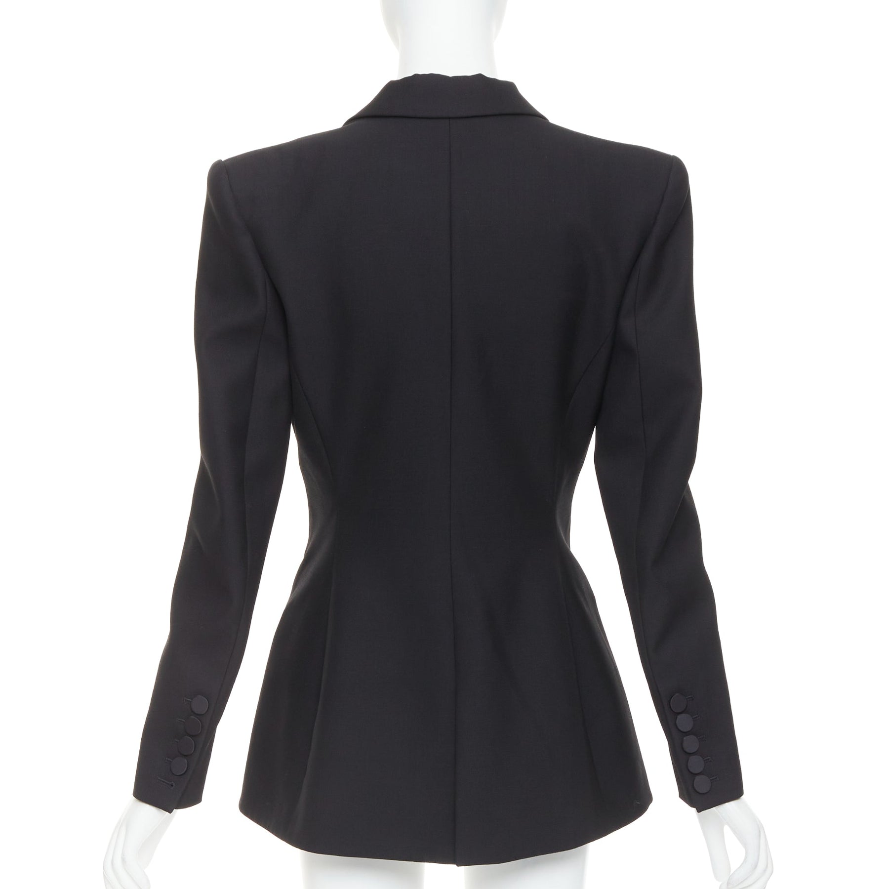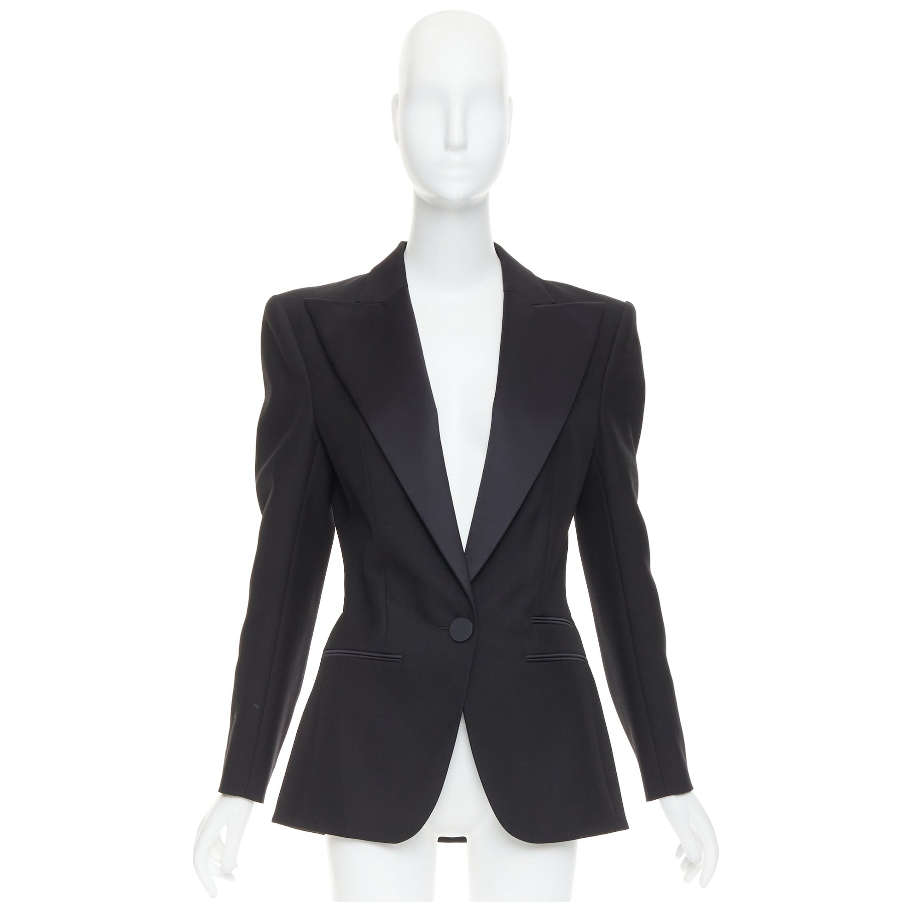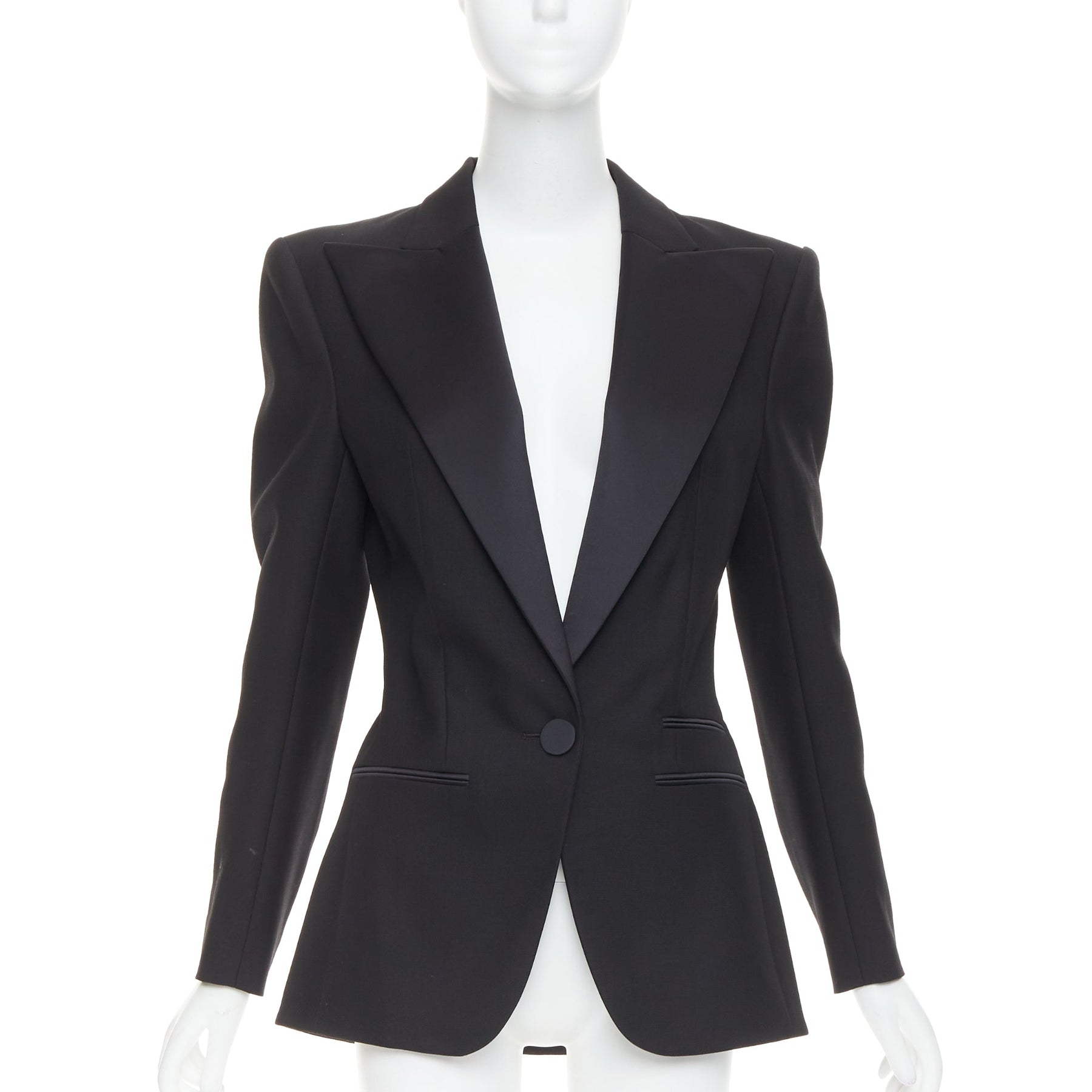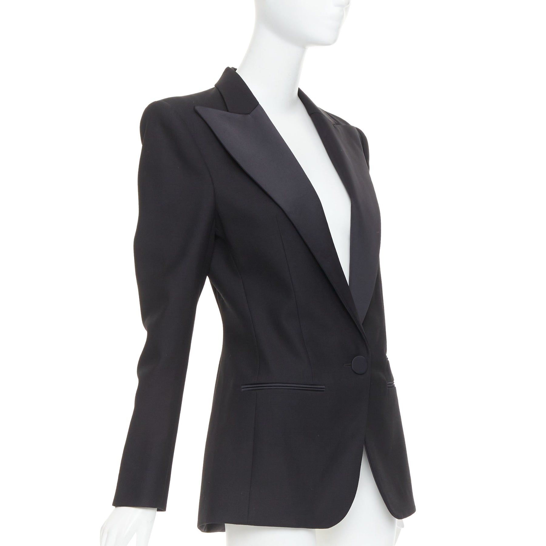 ALEXANDRE VAUTHIER black wool satin peak lapel single breasted tuxedo blazer