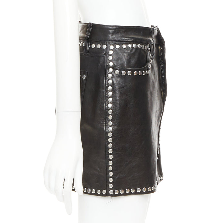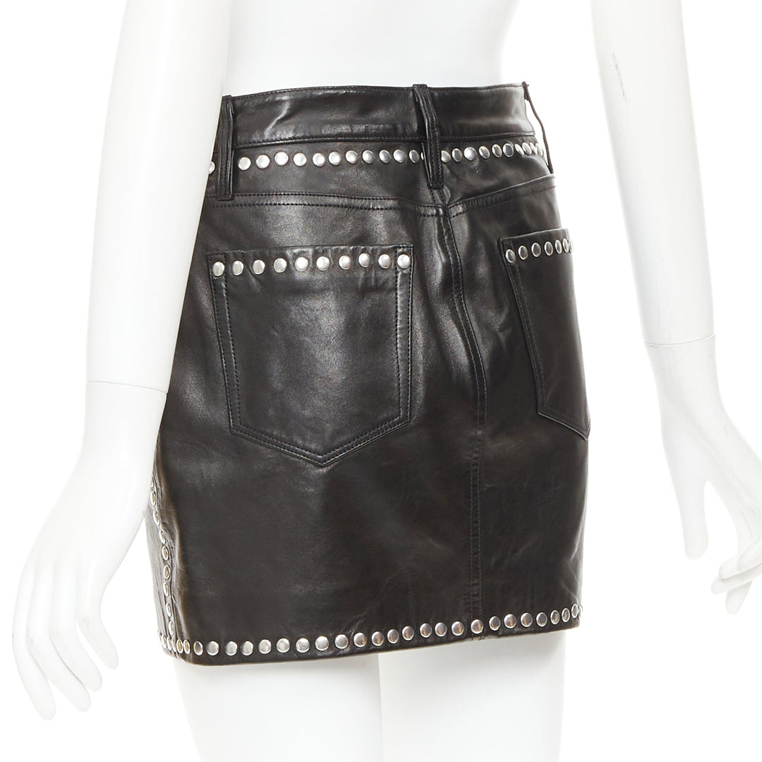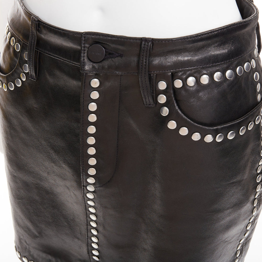 FRAME black lambskin leather silver studded high waist mini skirt 25"
