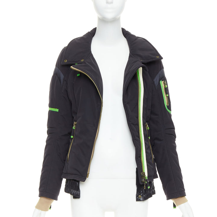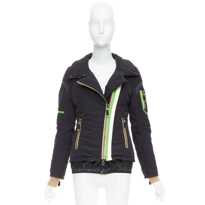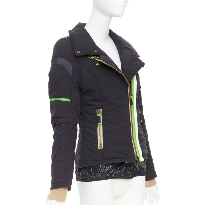 FRAUENSCHUH Limited Edition black nylon green nude zip snow puffer jacket XS