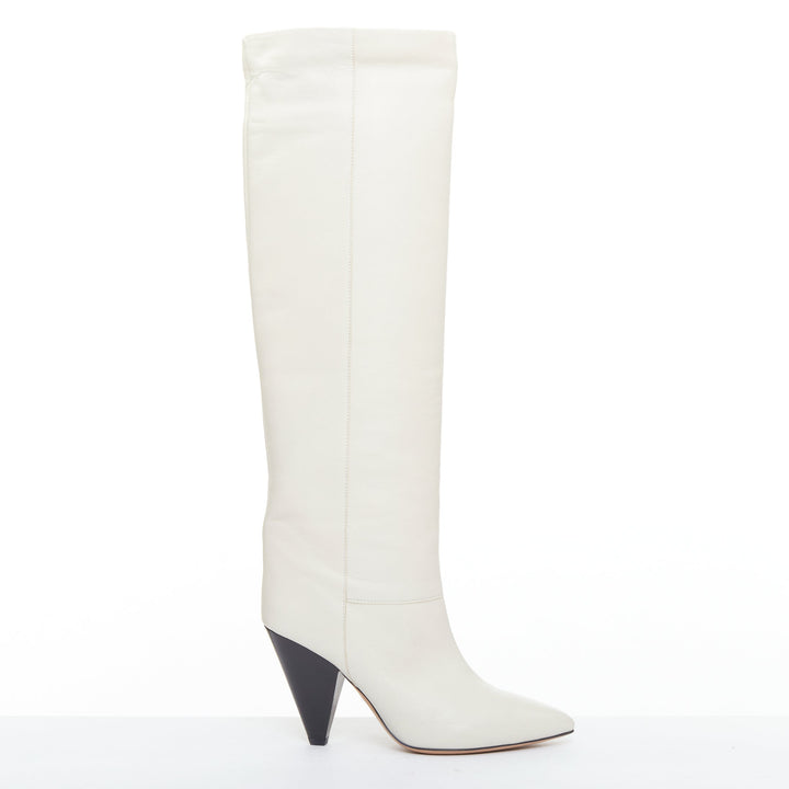 ISABEL MARANT Loens chalk beige lamb leather cone heel high boots EU37
