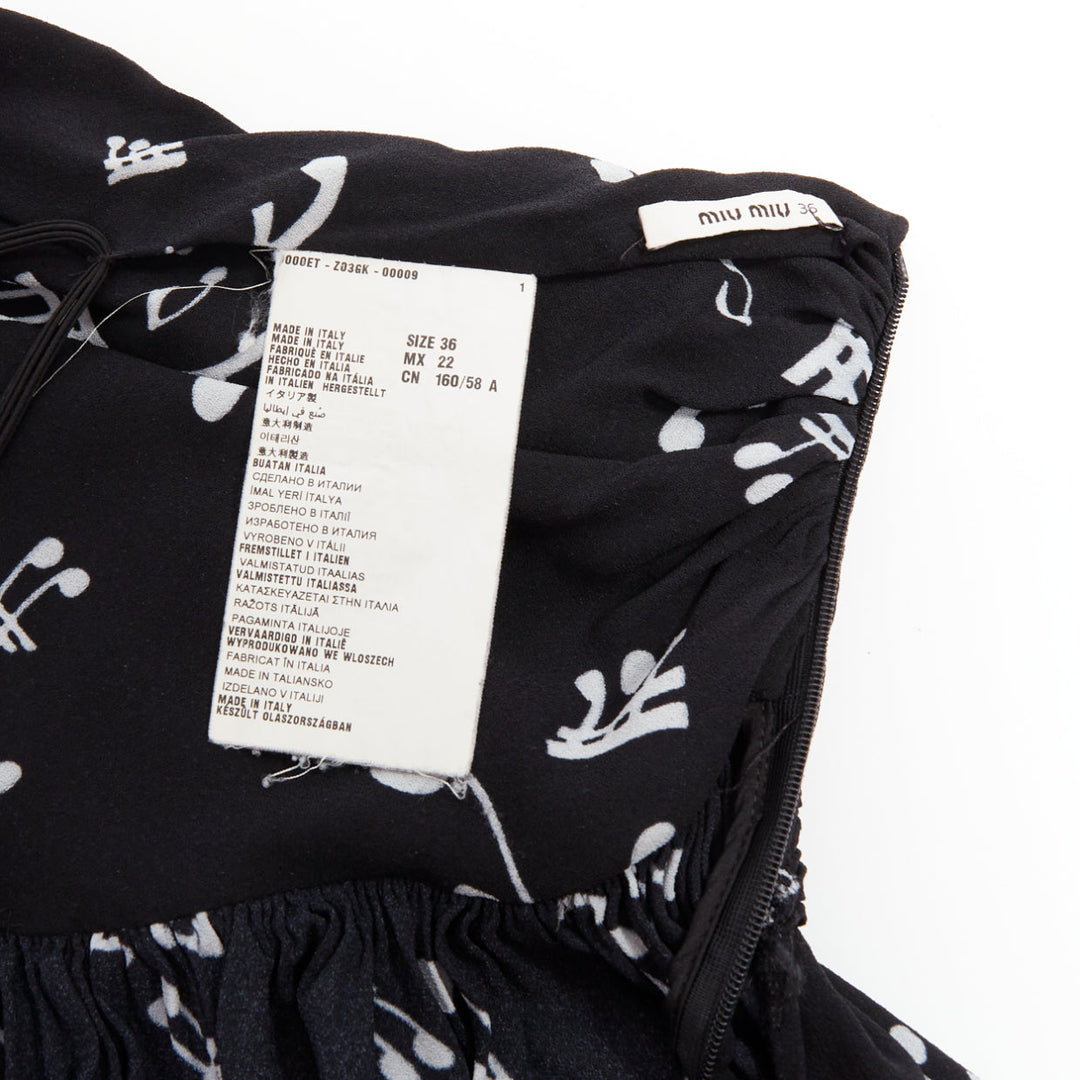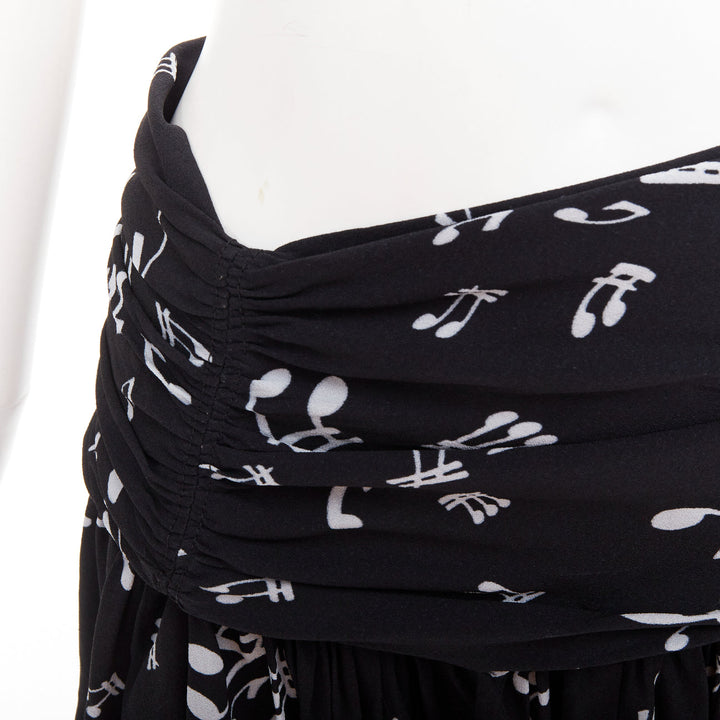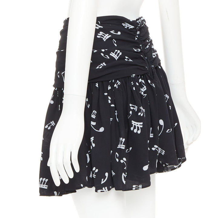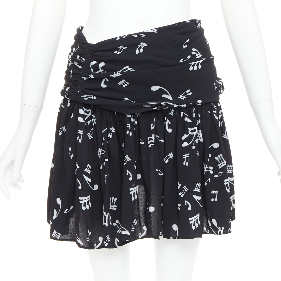 MIU MIU 2013 black white viscose blend musical notes ruched mini skirt IT36 XXS