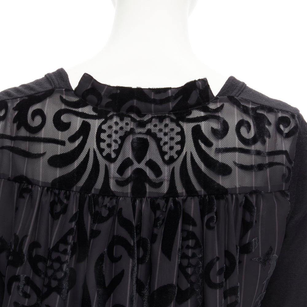 SACAI 2014 black 100% wool velvet devore striped sheer sweater dress JP2 M