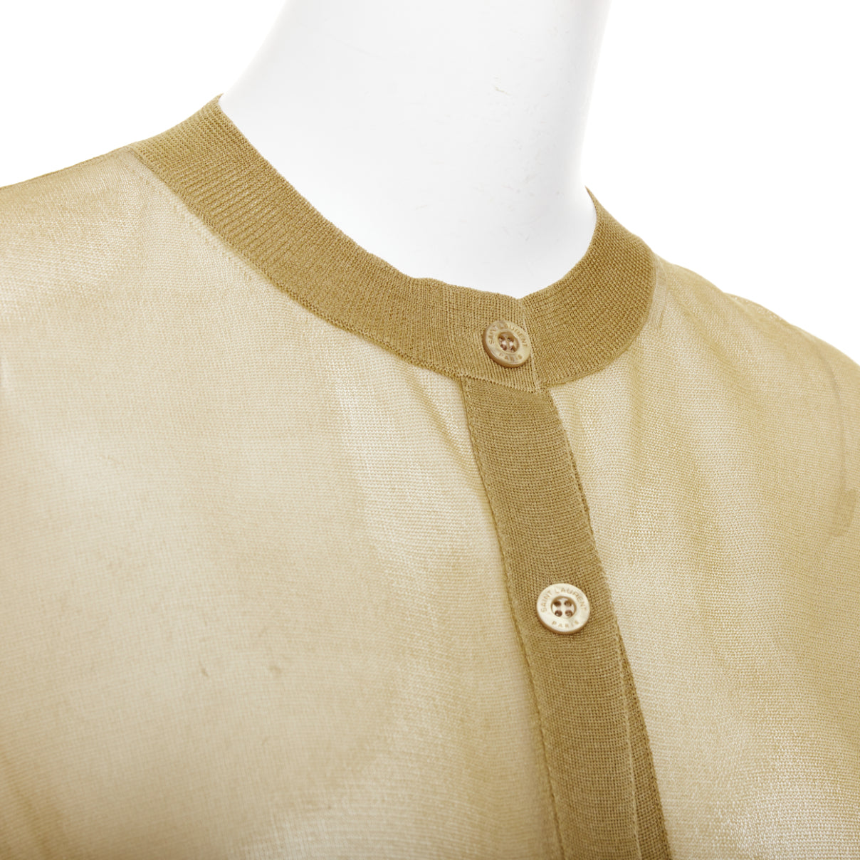 SAINT LAURENT 2024 100% silk beige gold sheer crew neck cardigan top L