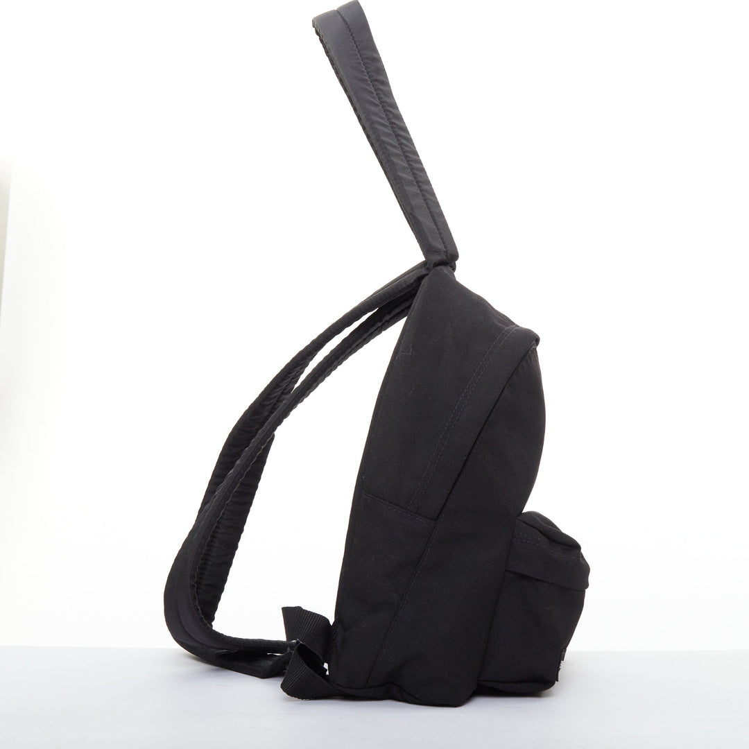 Extra Details: Vetements X Eastpak Mini Backpack in Black. Inspired by the iconic "Padded Pack'r" silhouette, this collaboration features a compact design with an extended hanging loop for a distinctive look. Made from 100% polyamide.