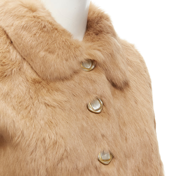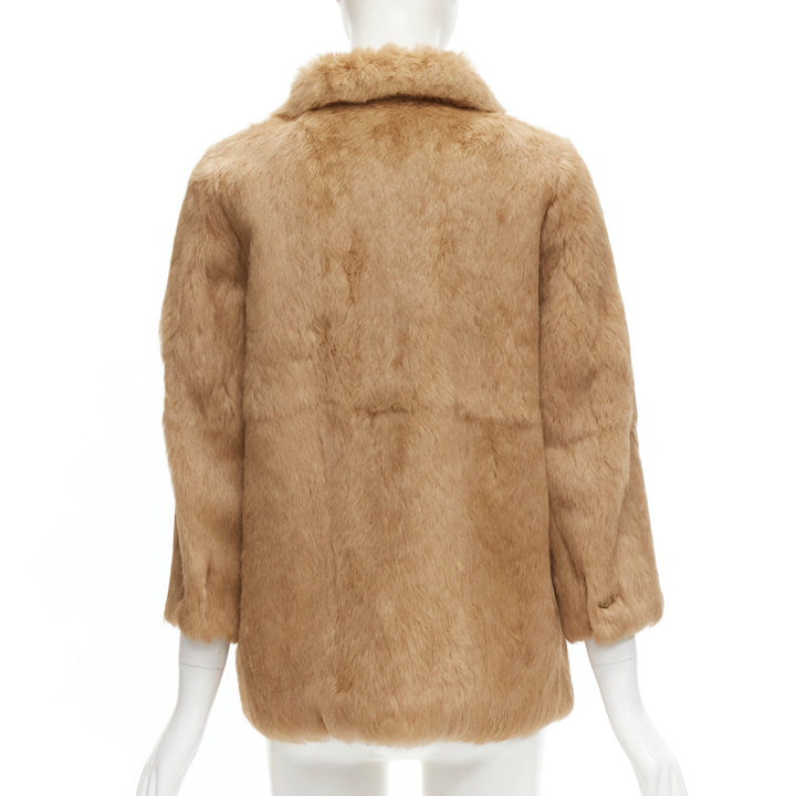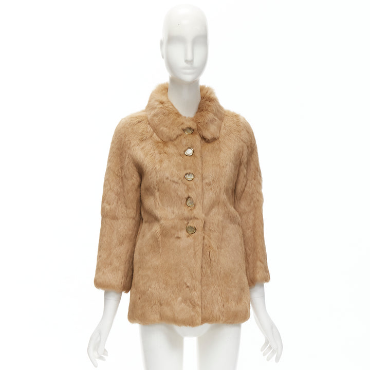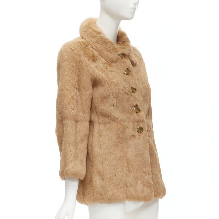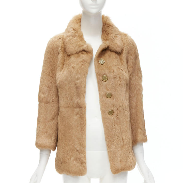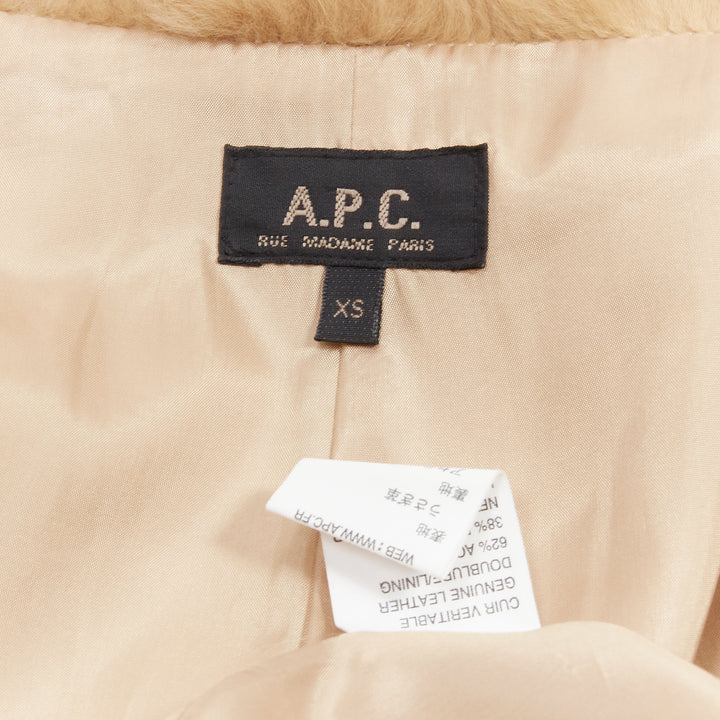 APC tan brown genuine fur gold-tone buttons winter coat jacket XS