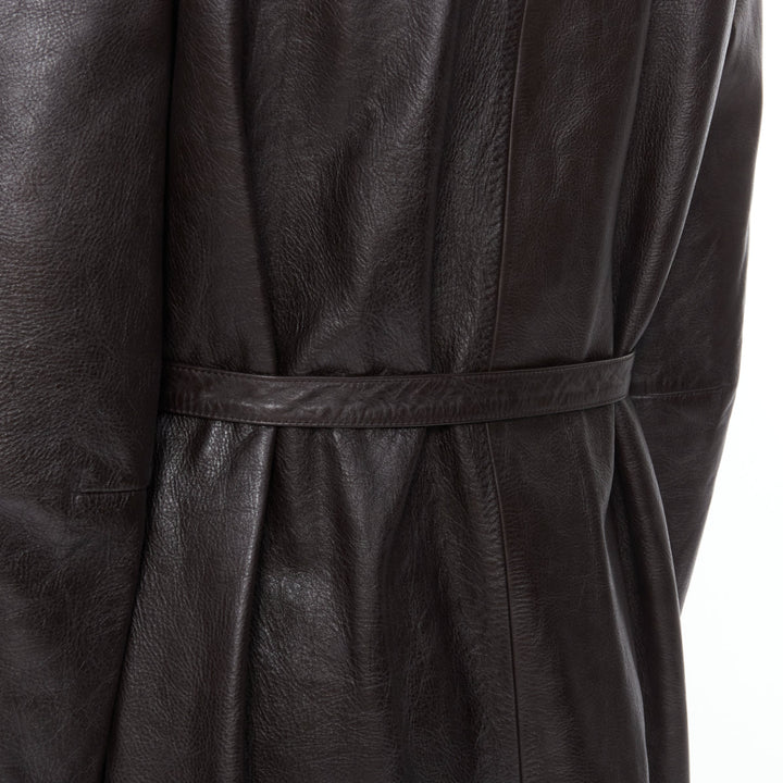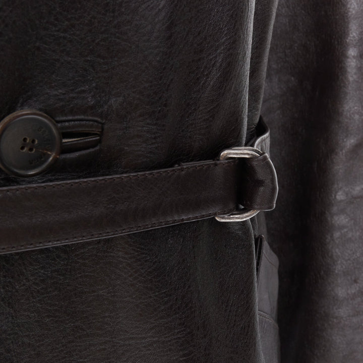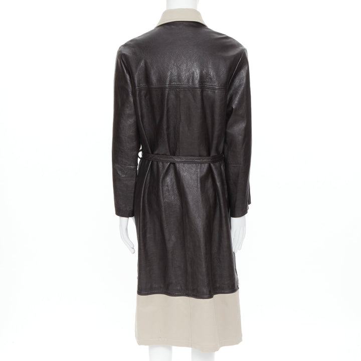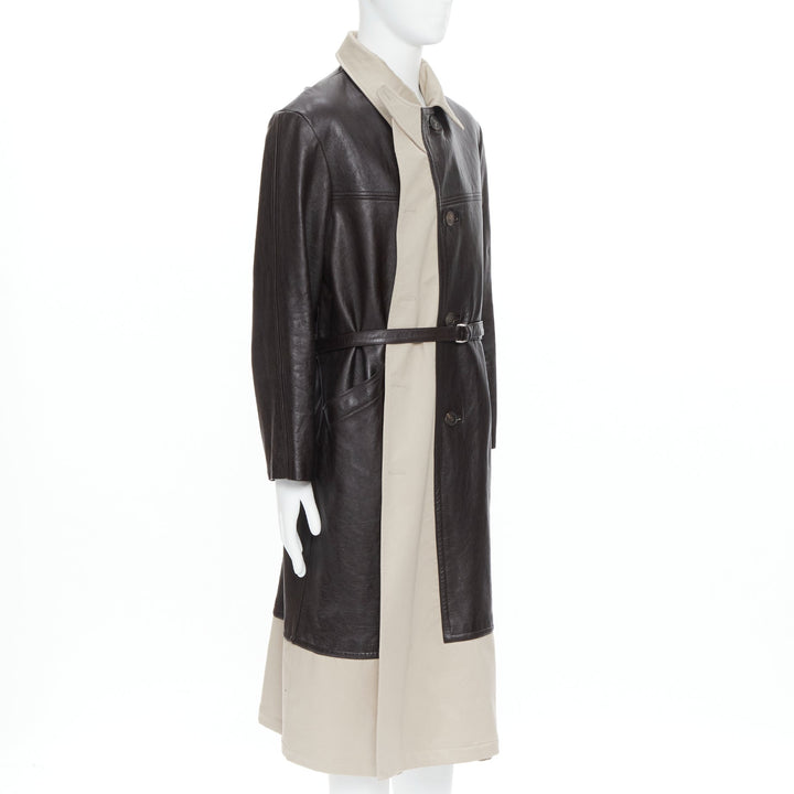 BALENCIAGA Fake Layering black leather beige trench belted coat M