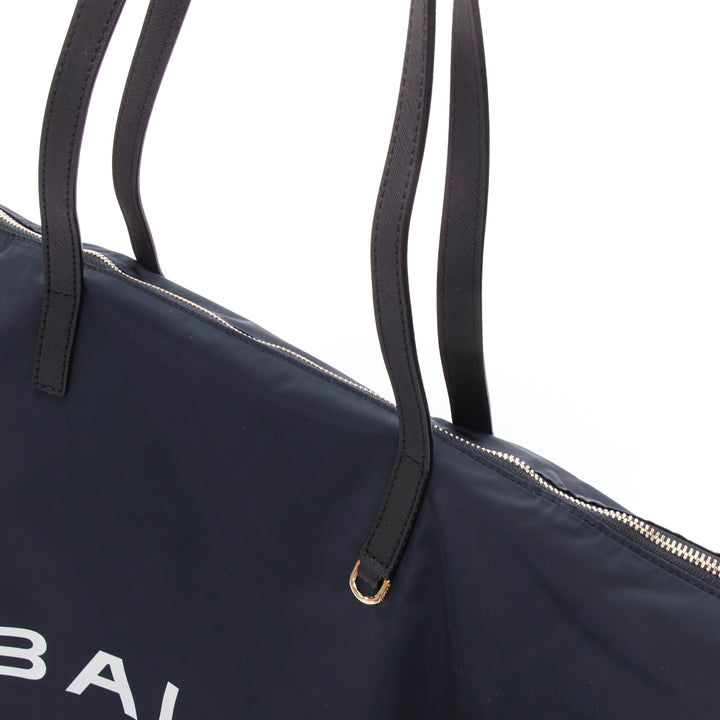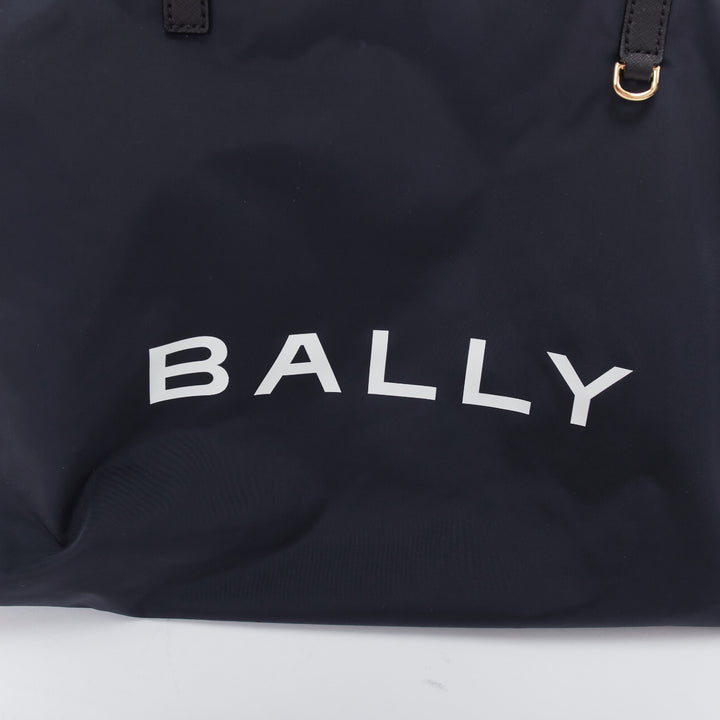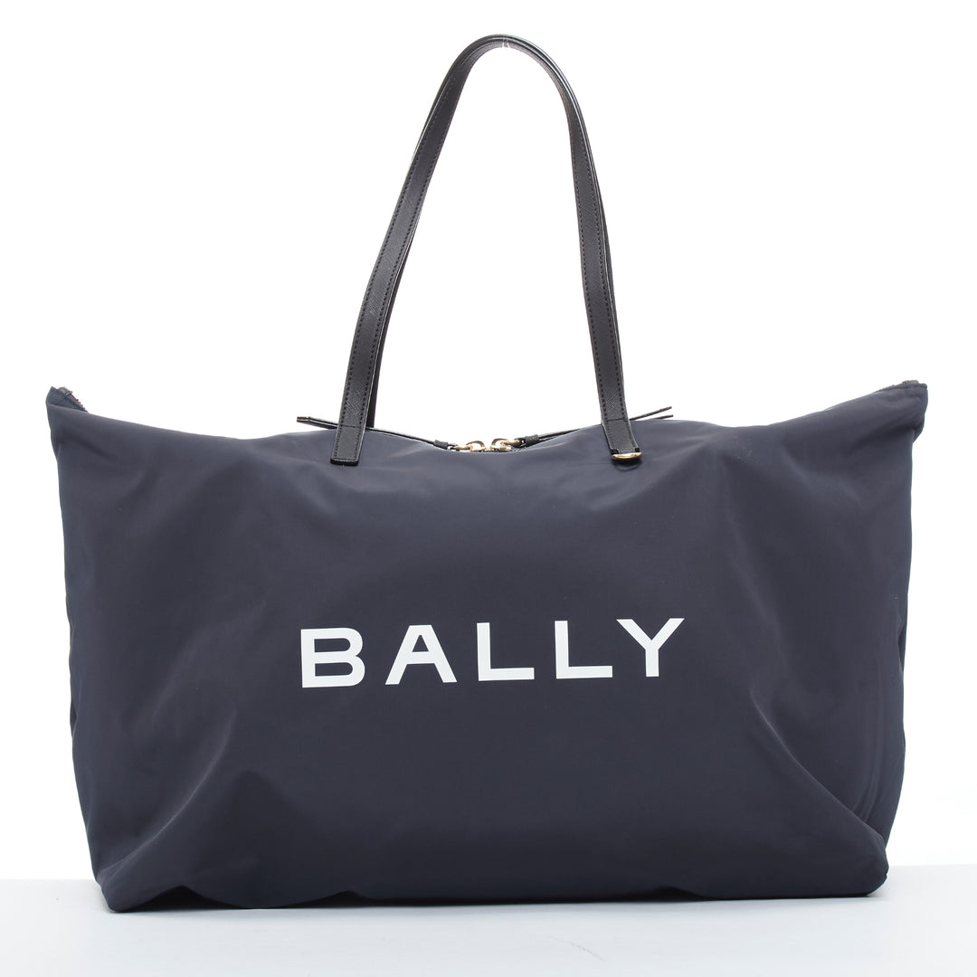 BALLY navy nylon white logo travel luggage foldable shoulder tote bag
