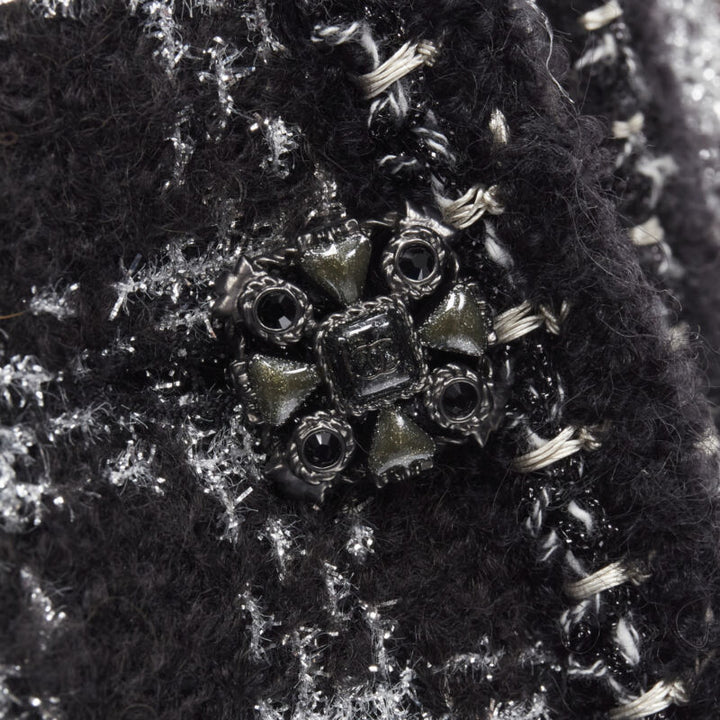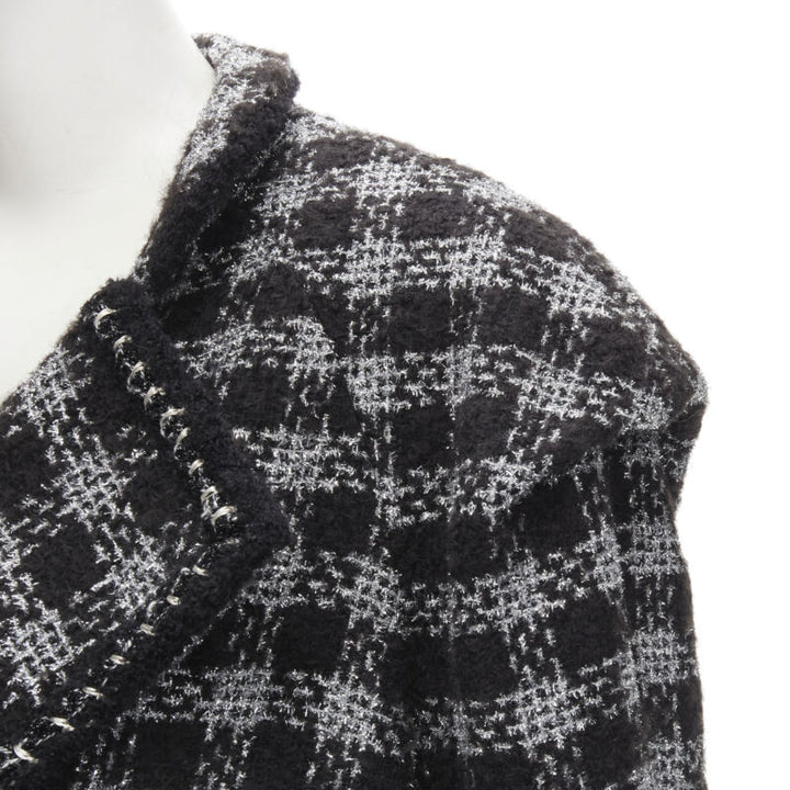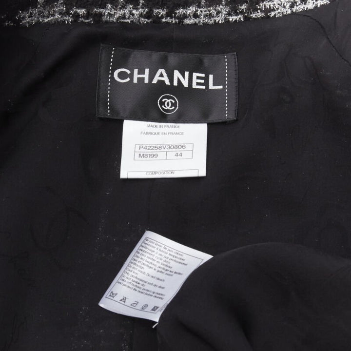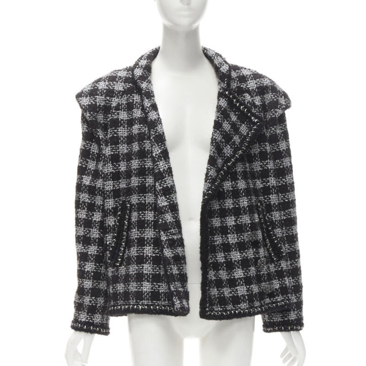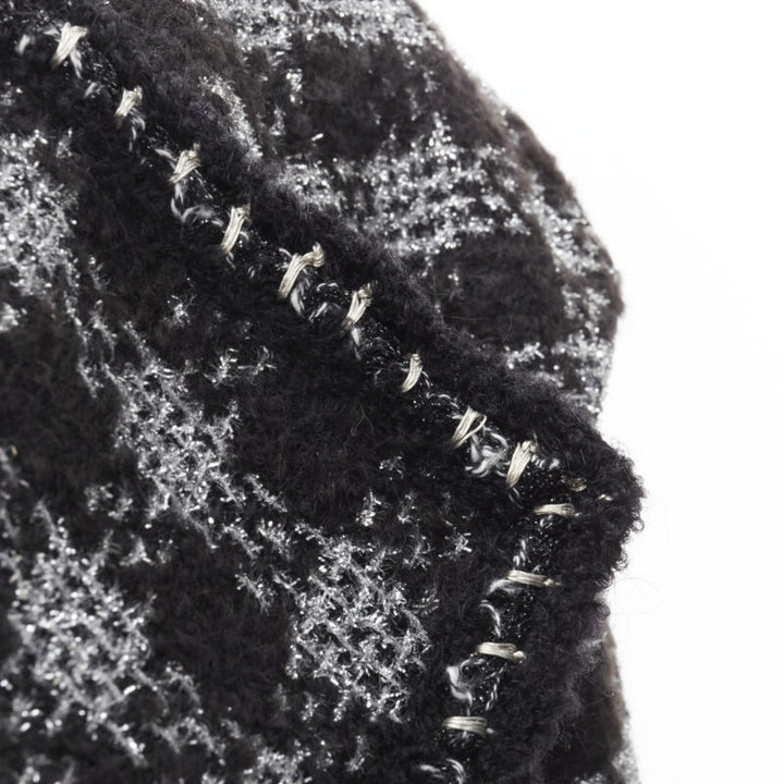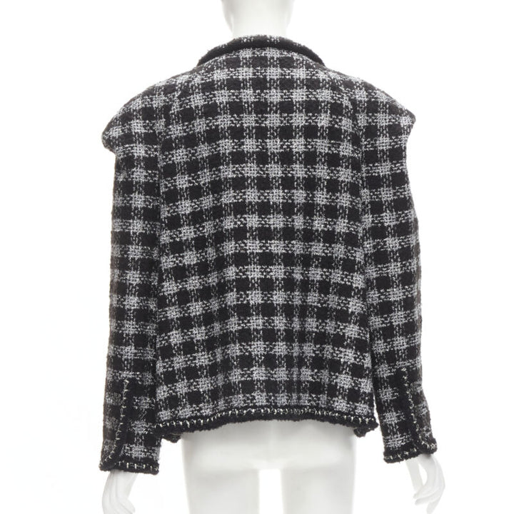 CHANEL 11A Fantasy Tweed black silver checkered asymmetric collar jacket FR44 XL
