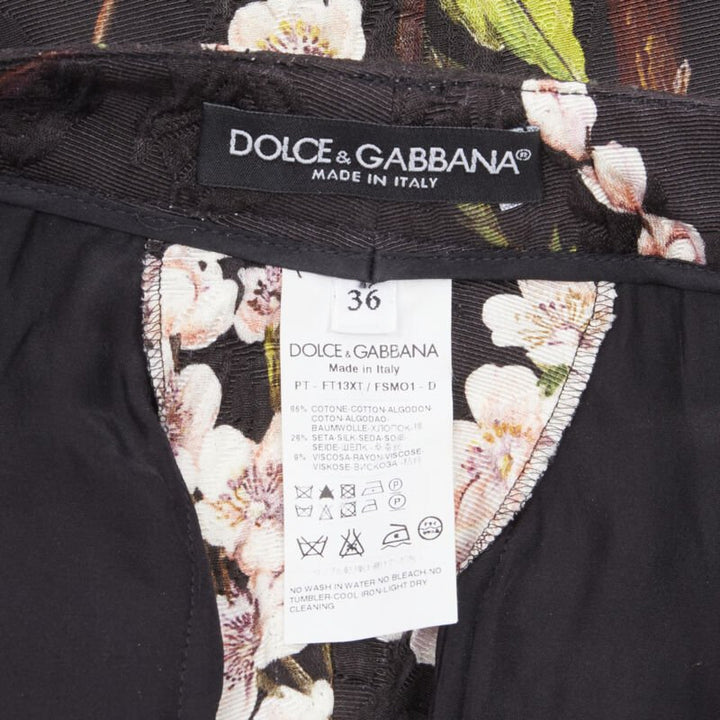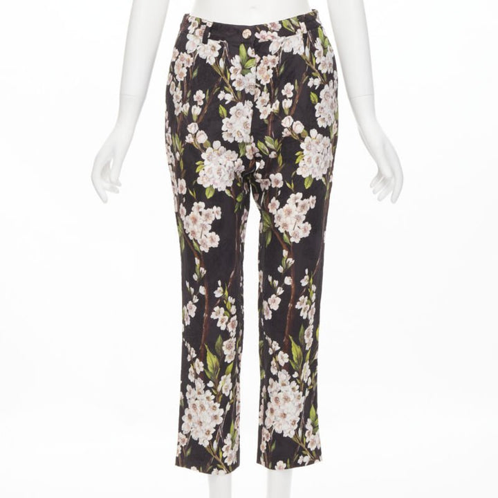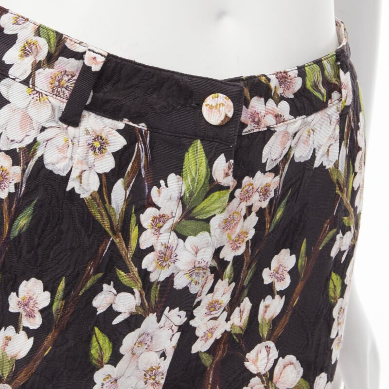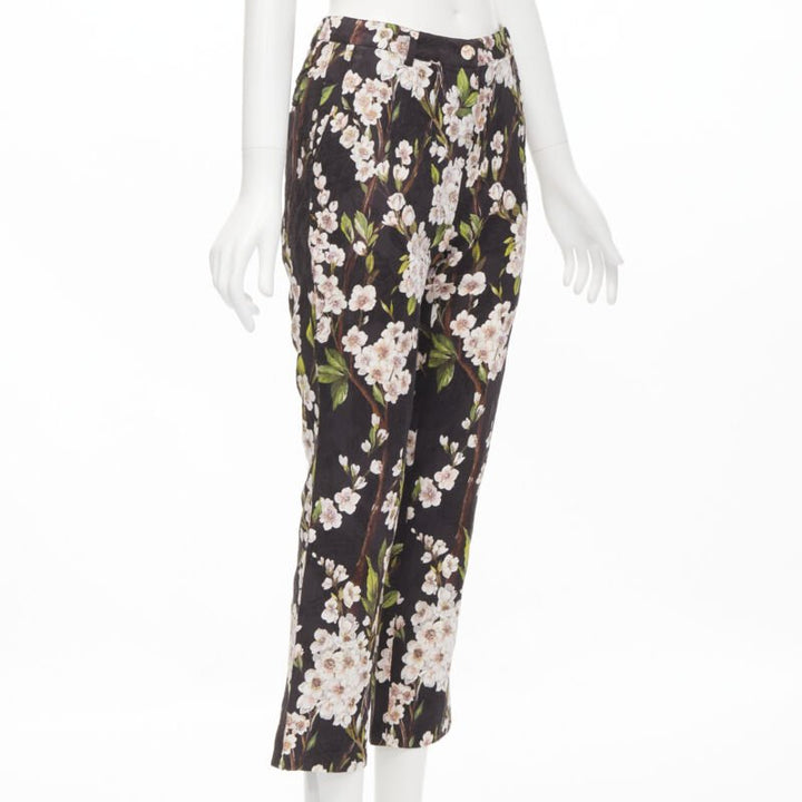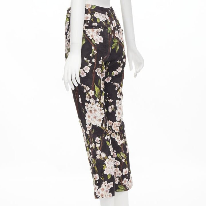 DOLCE GABBANA black pink floral blossom print jacquard cropped pants IT36 XXS