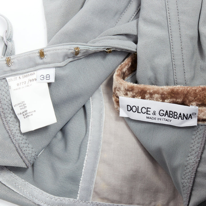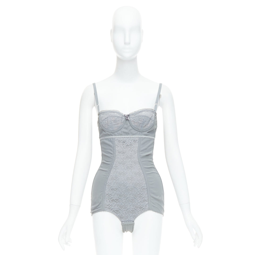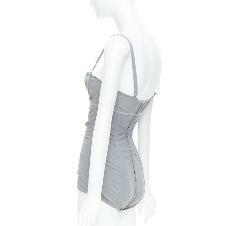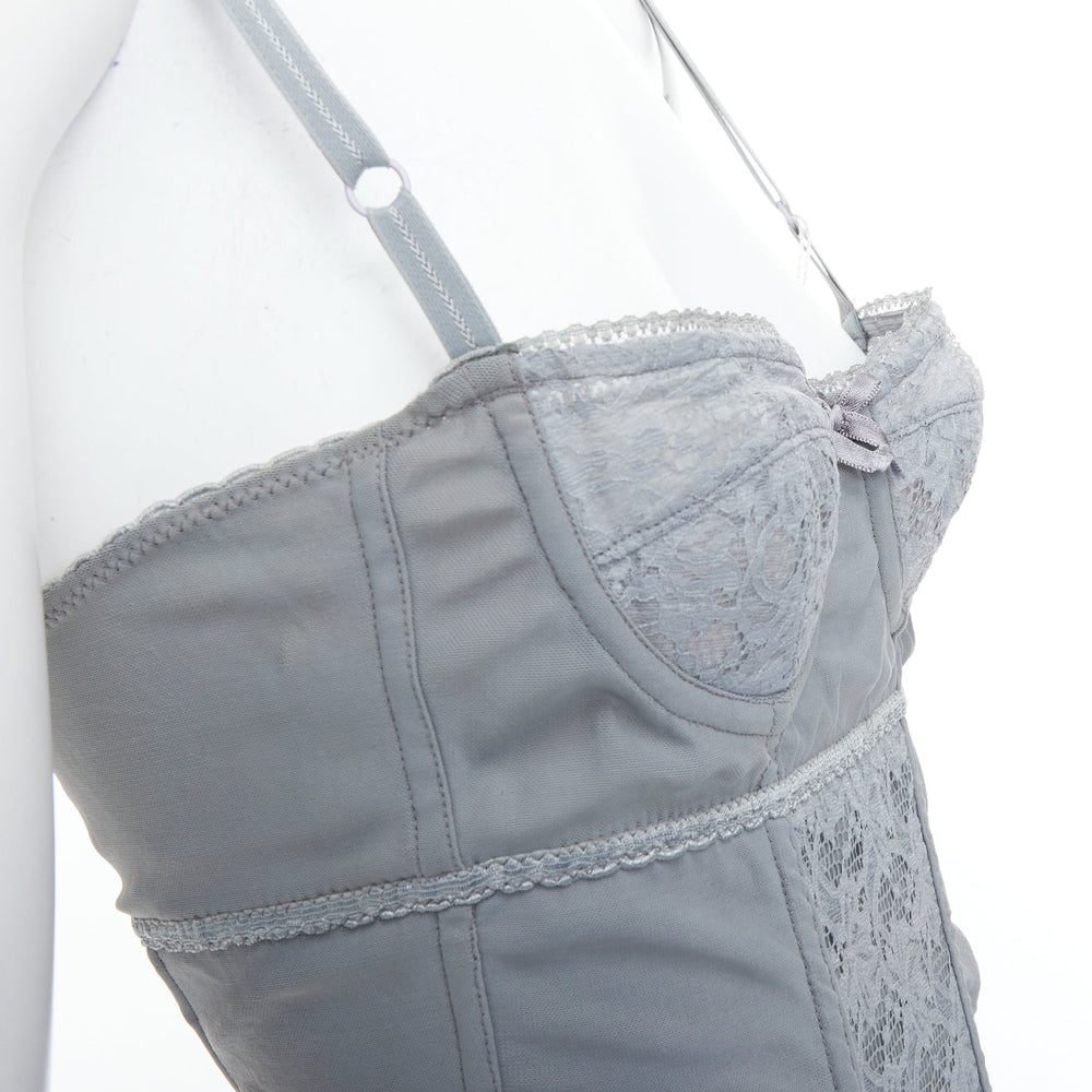 DOLCE GABBANA Vintage grey bow lace fitted boned bustier bodysuit top IT38 XS