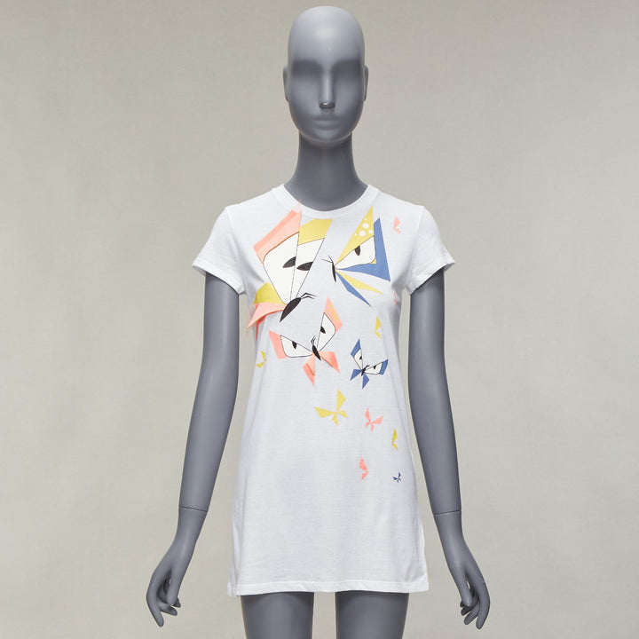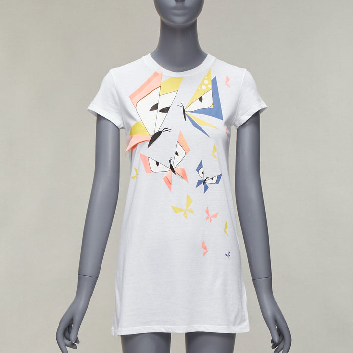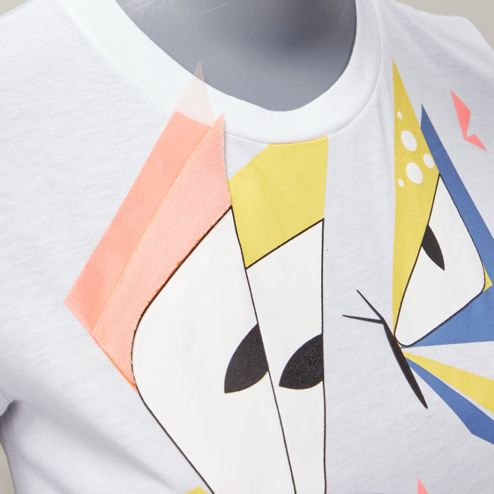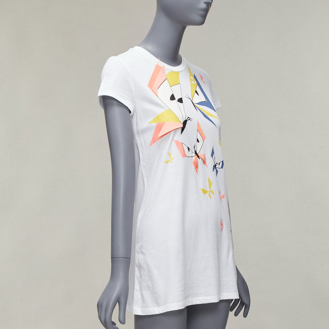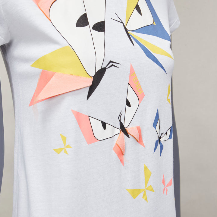 FENDI KIDS Angry Monster Butterfly applique white cap sleeve long tshirt 12Y XS