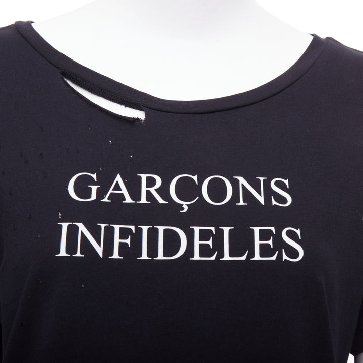 GARCONS INFIDELES black cotton white logo distressed tshirt M
