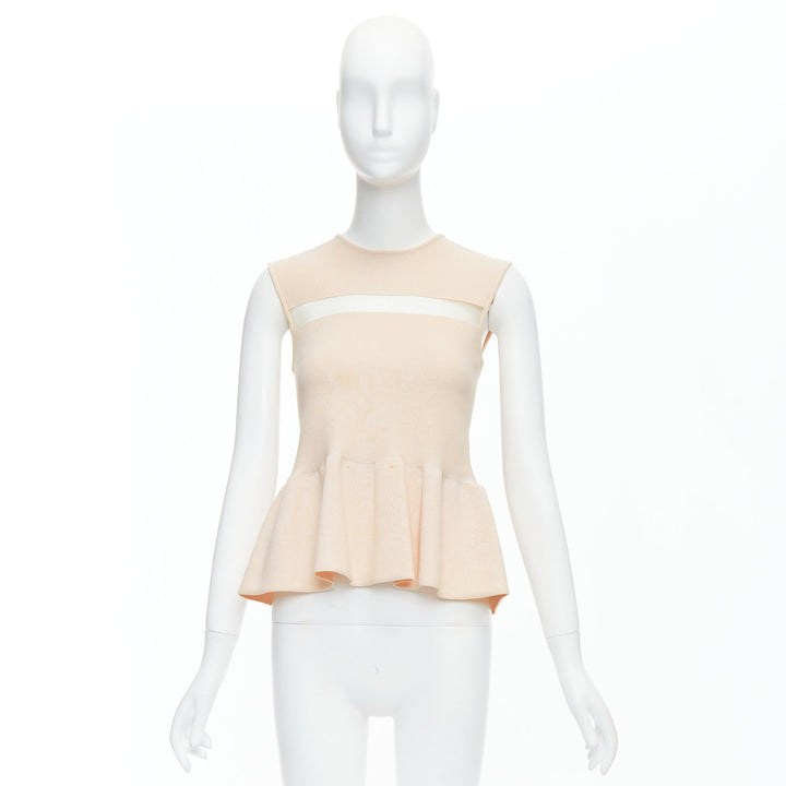 GIAMBATTISTA VALLI nude cotton sheer panel peplum top XXS