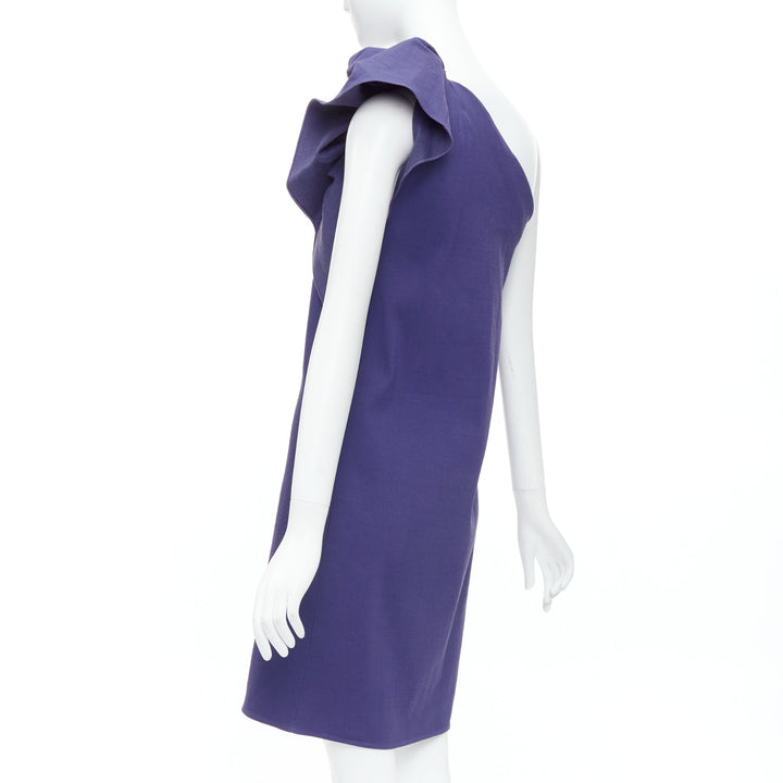 LANVIN 2015 deep purple linen one shoulder ruffle dress FR38 M