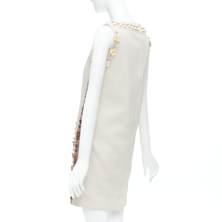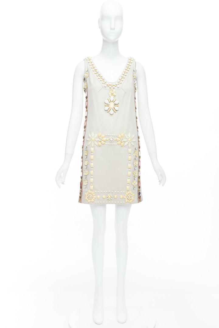 LANVIN BLANCHE beige cream heavily embellished bridal shift dress FR36 S