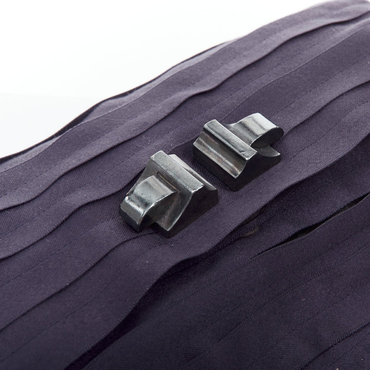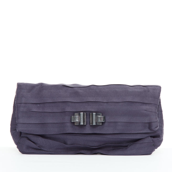 LANVIN purple satin pleated fabric silver buckle foldover clutch bag