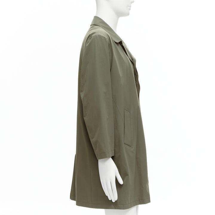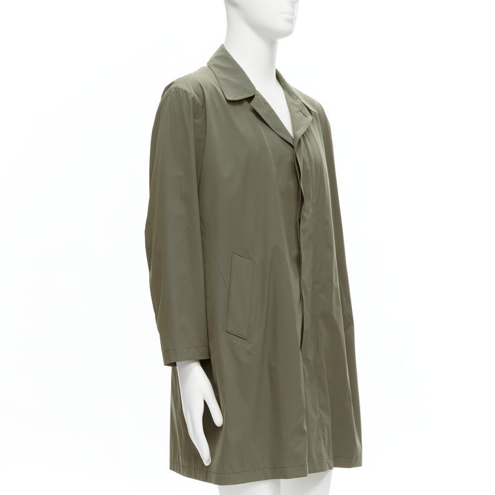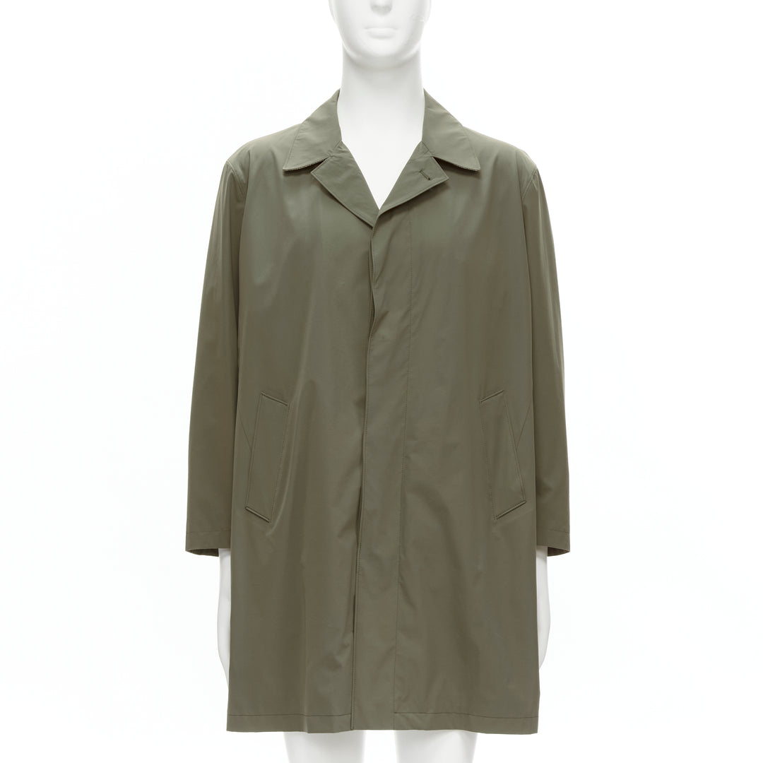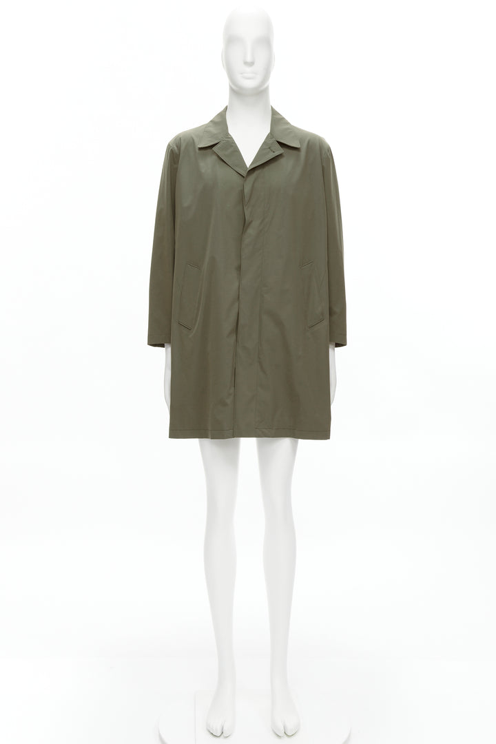 LORO PIANA green classic minimal invisible buttons longline jacket coat XL