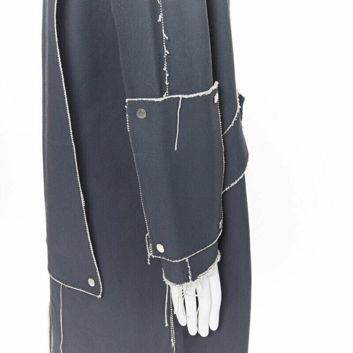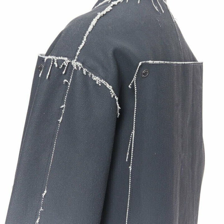 OFF WHITE VIRGIL ABLOH grey coated heavy canvas frayed edge snap panel coat XS