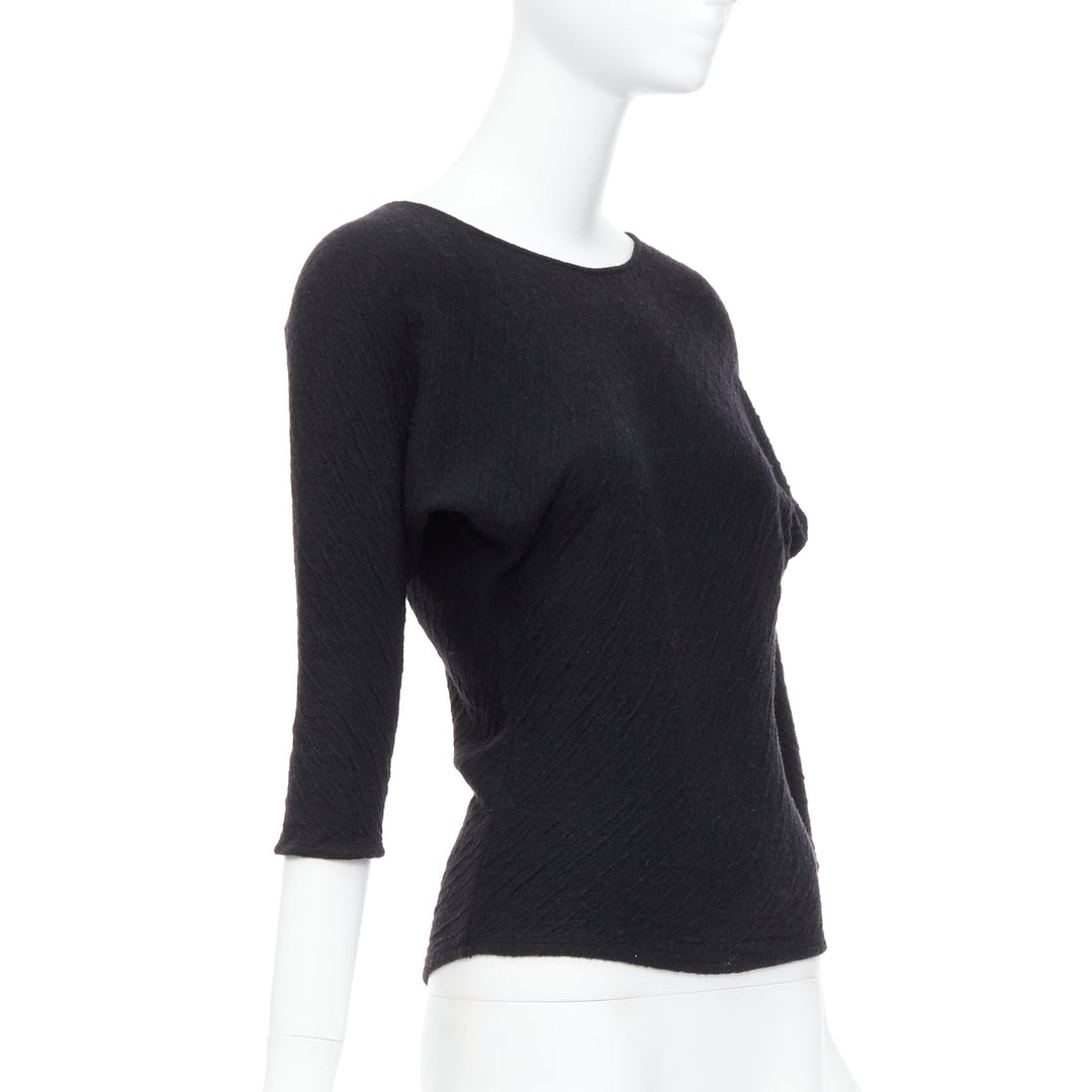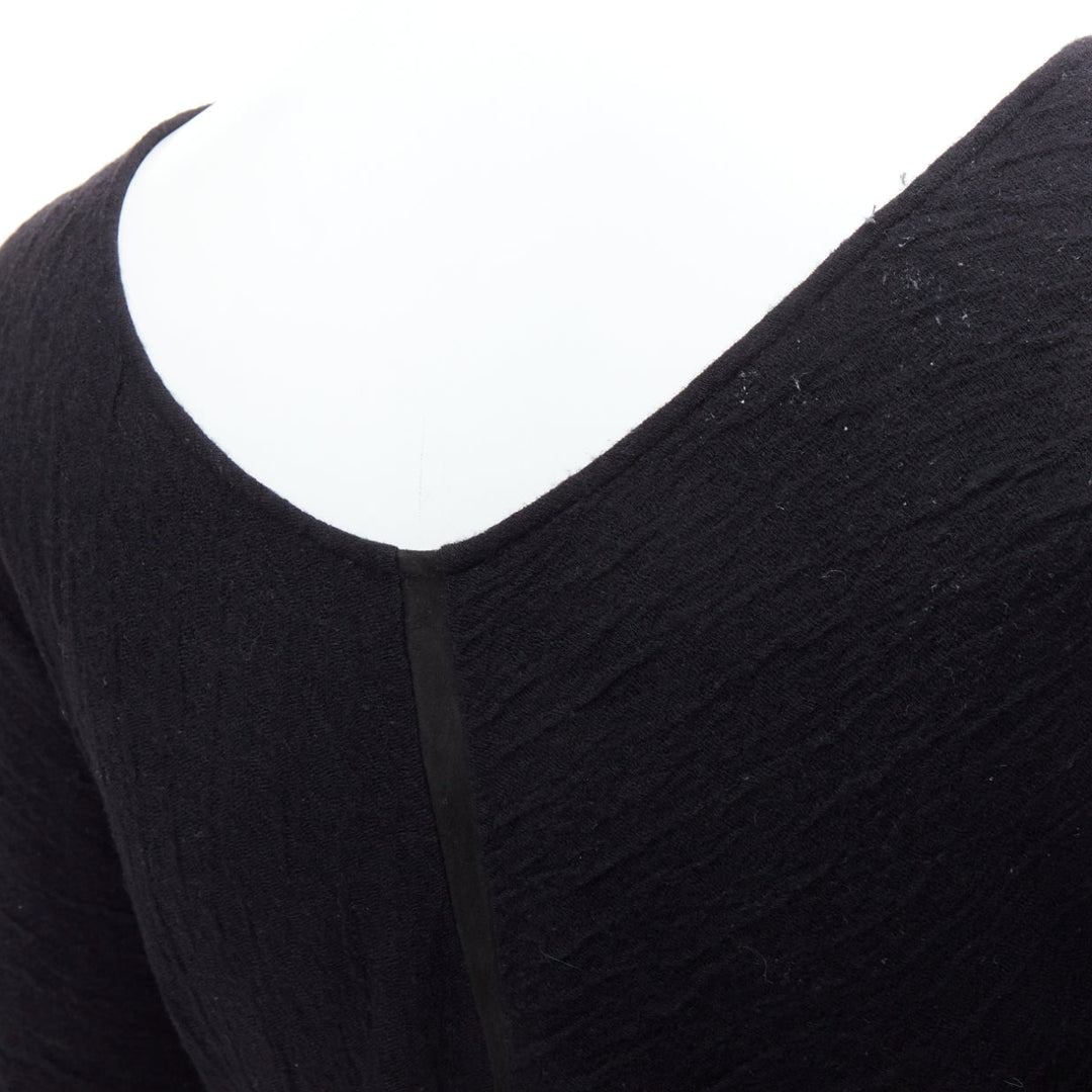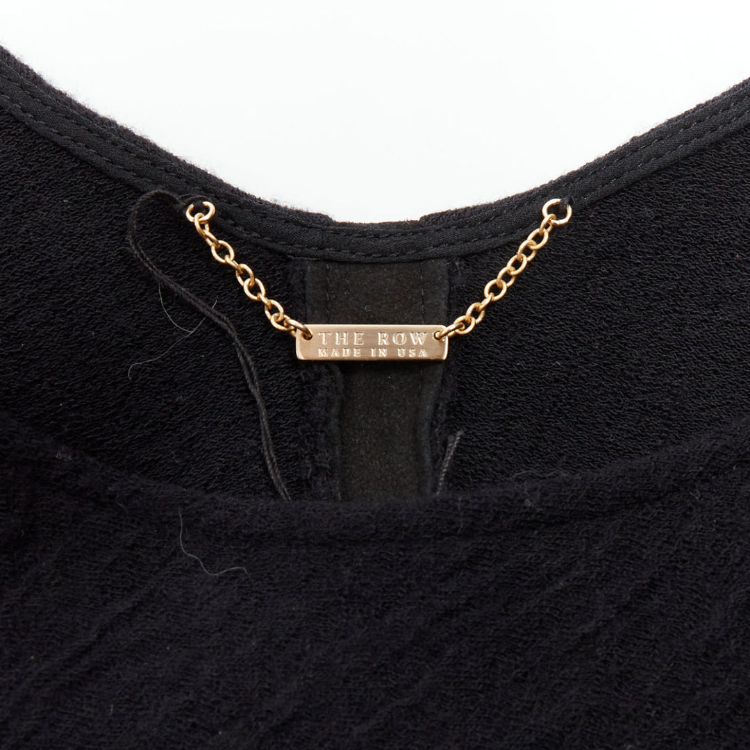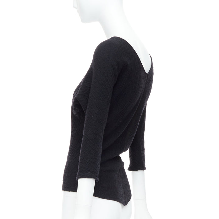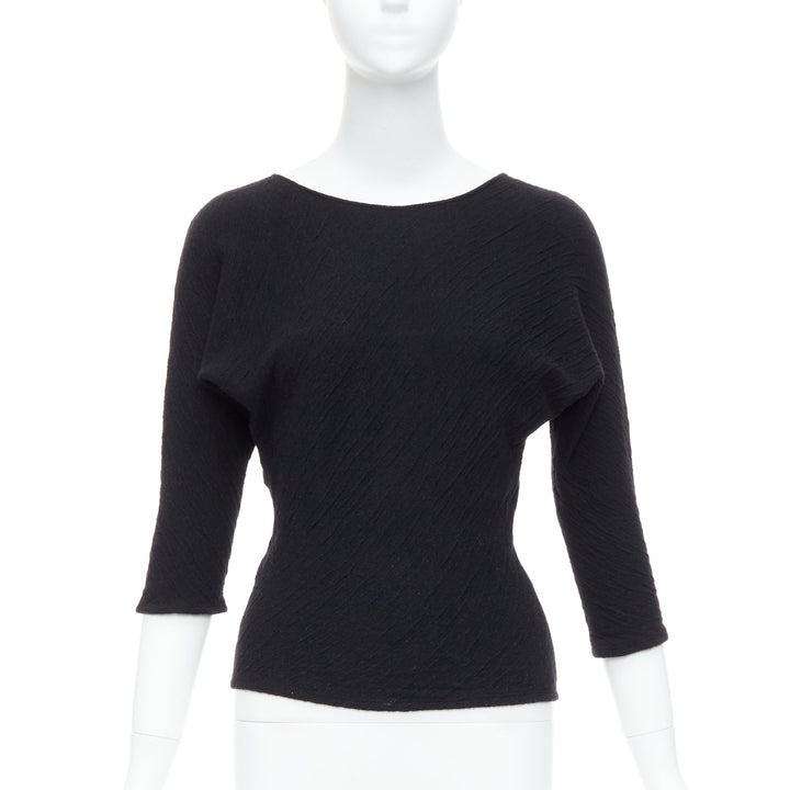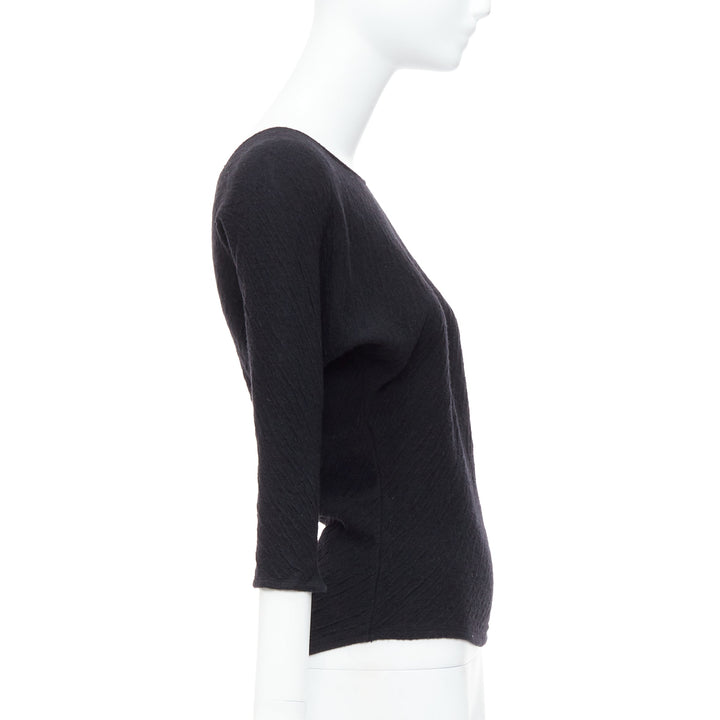 THE ROW black textured bateau neck cropped sleeve pullover top