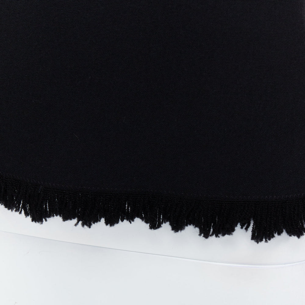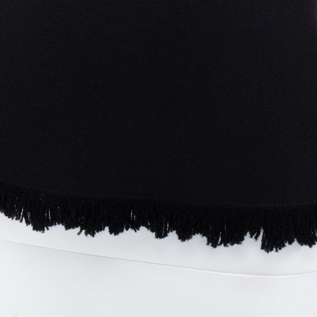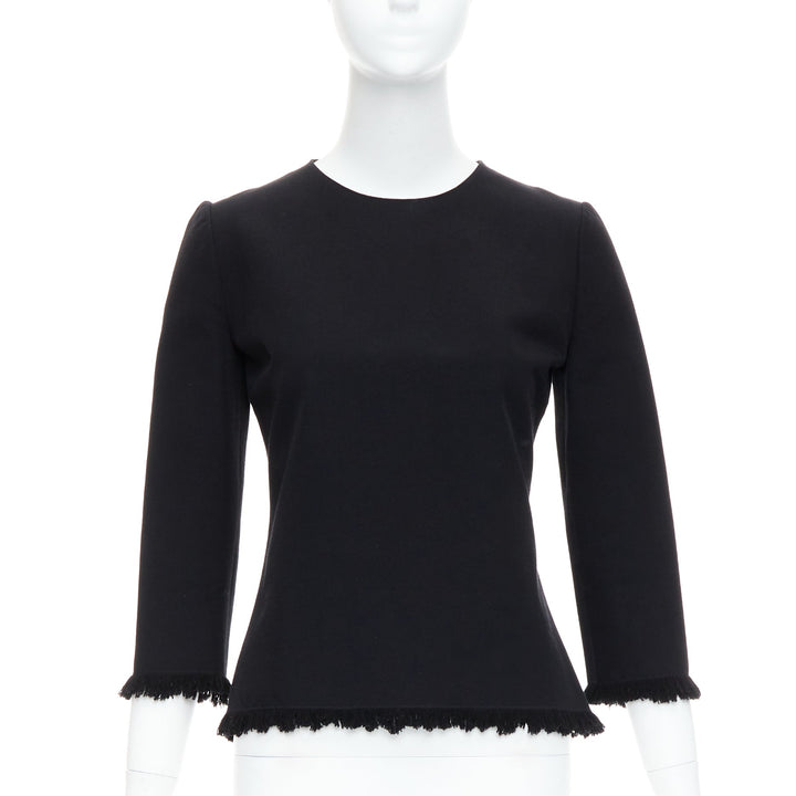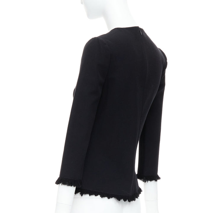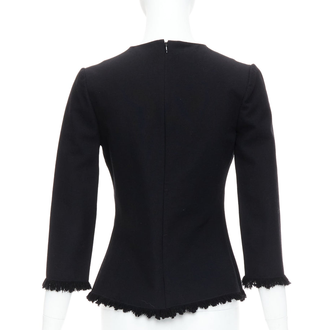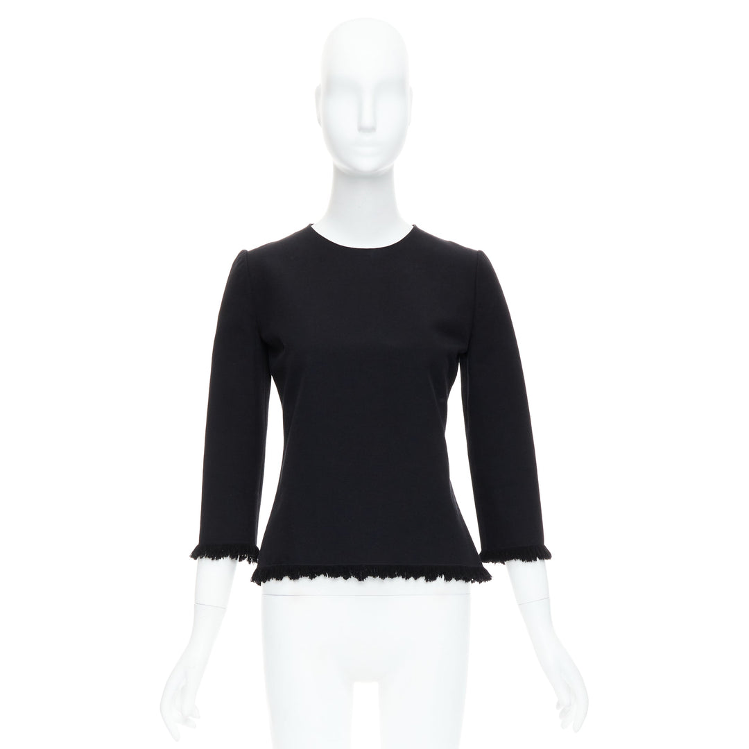 TOM FORD black virgin wool cotton fringe trim crop sleeved fitted top IT36 XXS