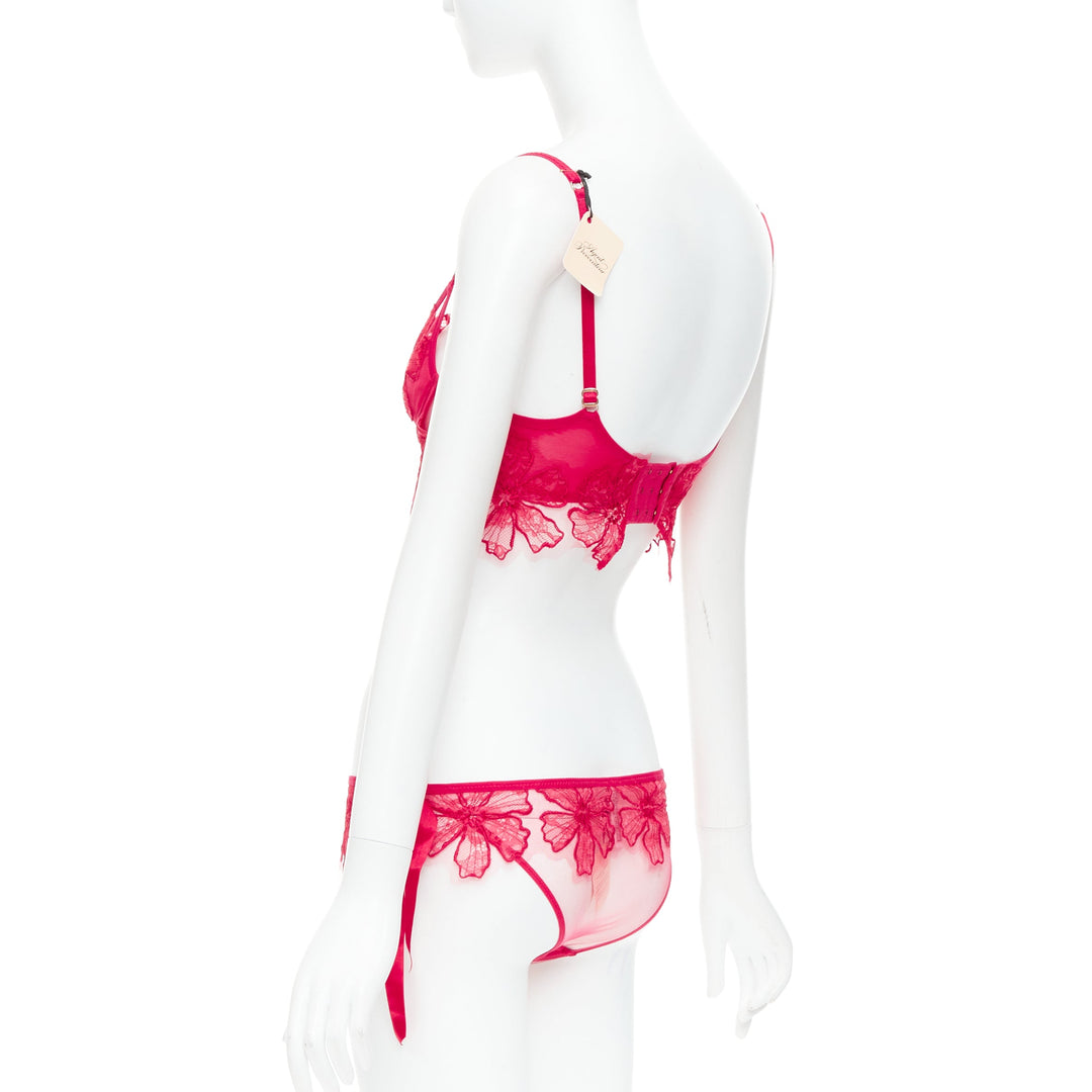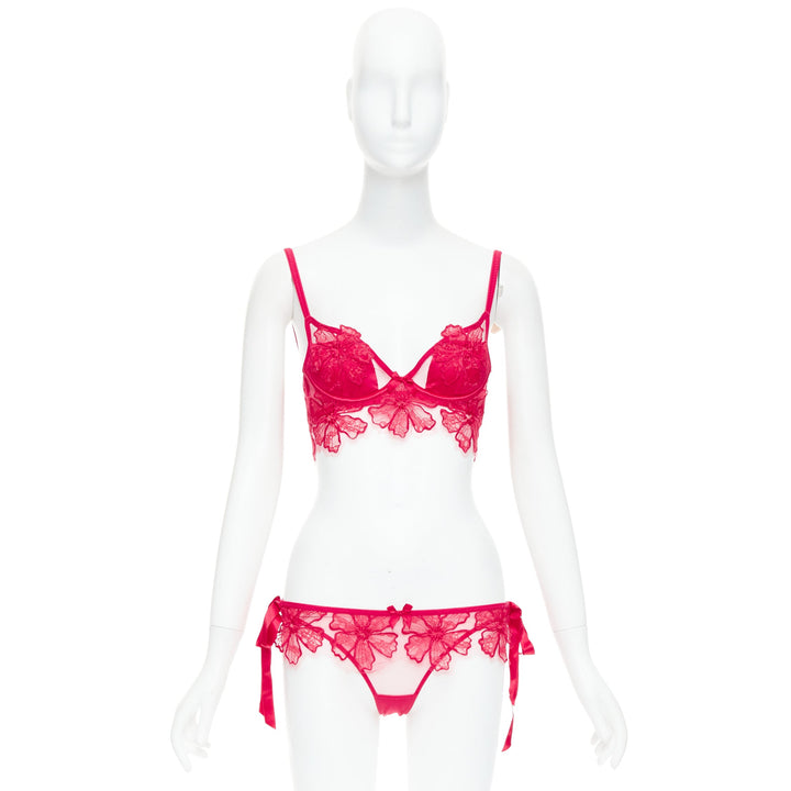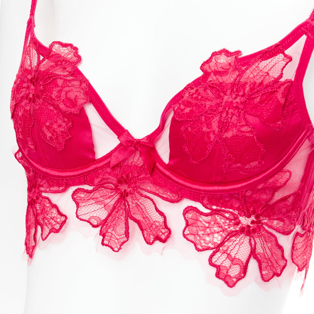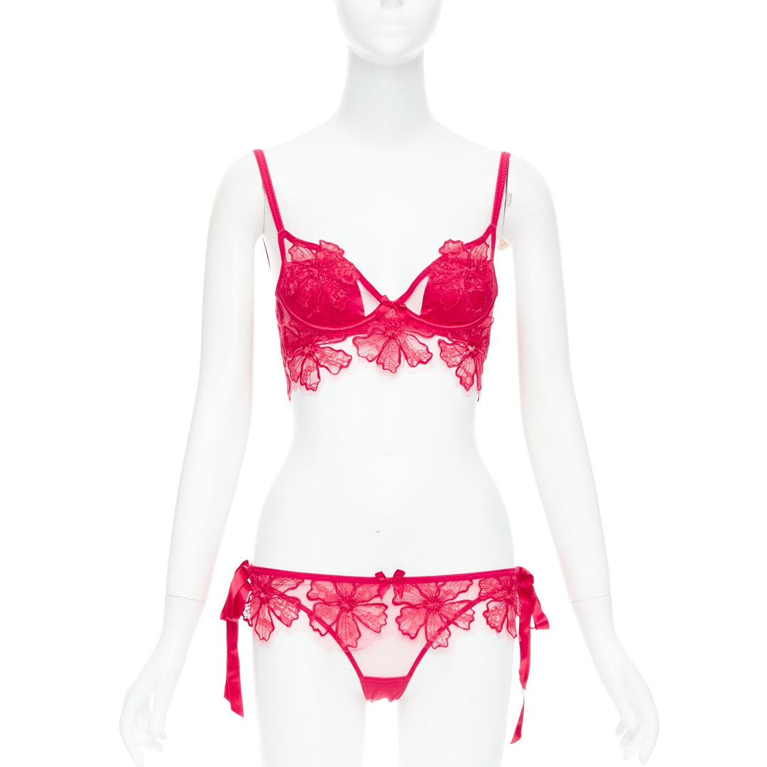 AGENT PROVOCATEUR Serephina red floral lace cotton trim bow lingerie set 86B M
