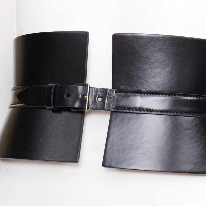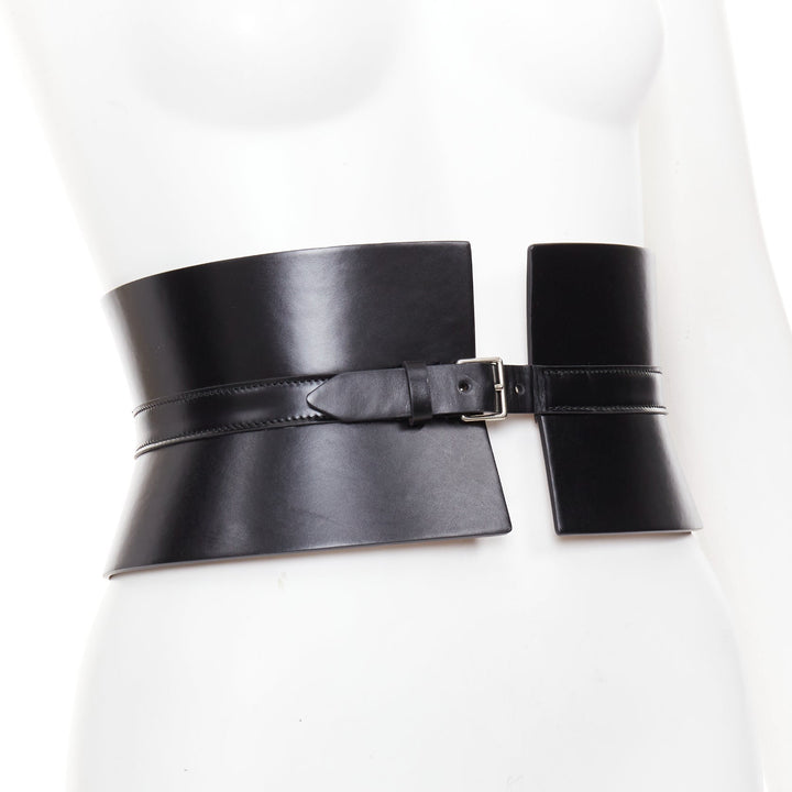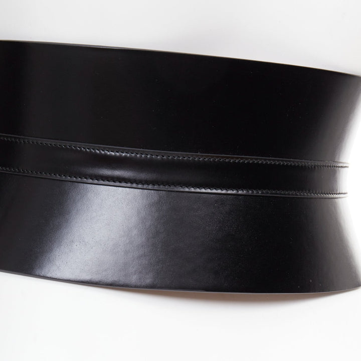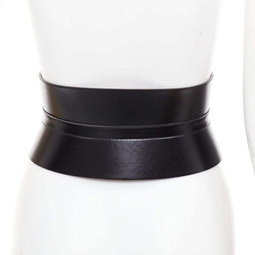 ALAIA black leather slim closure wide statement corset cinch belt 65cm
