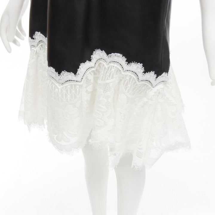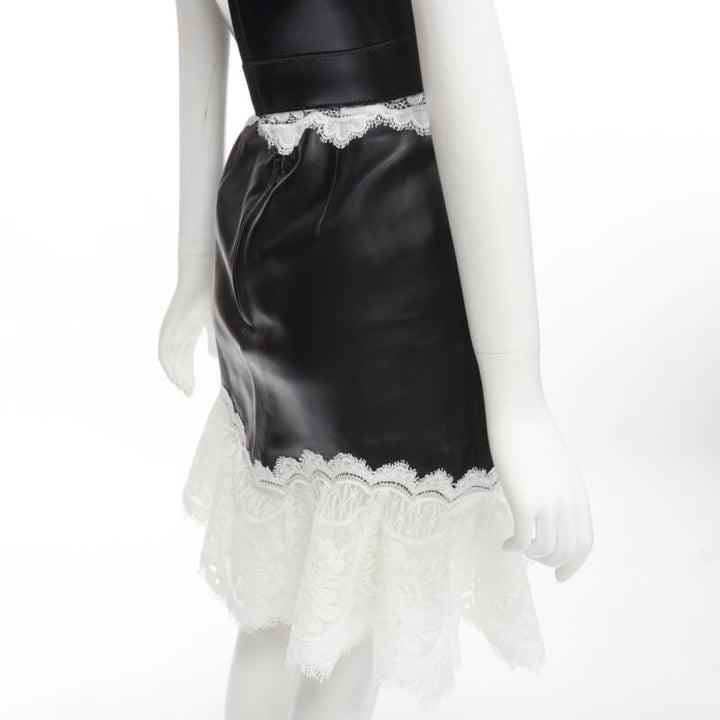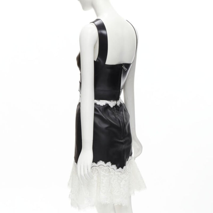 ALEXANDER MCQUEEN 2020 Runway black leather bustier white lace dress IT38 S