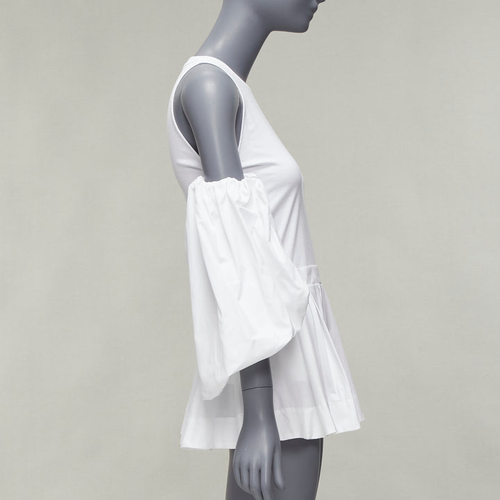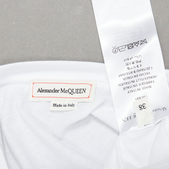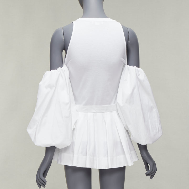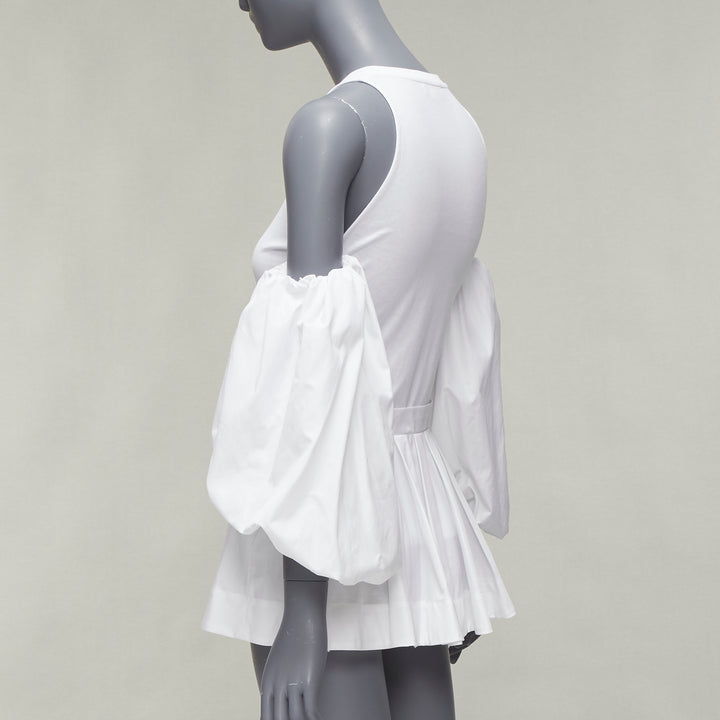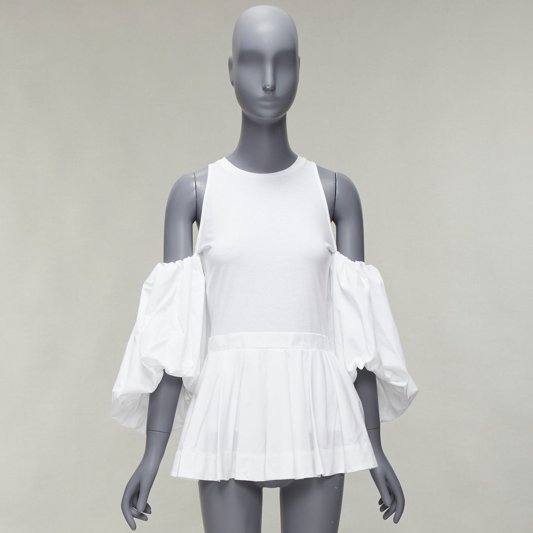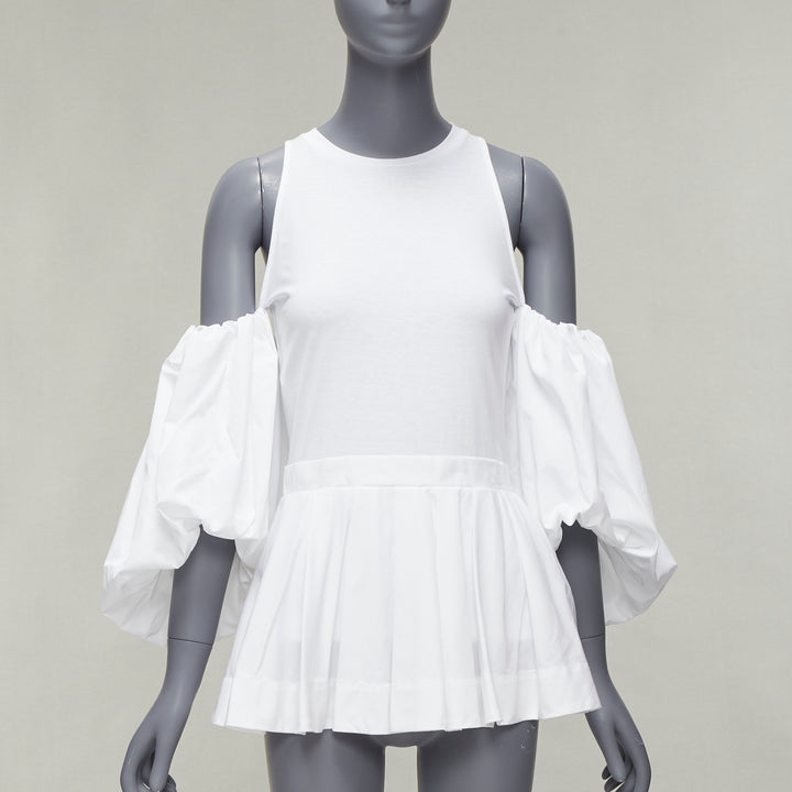 ALEXANDER MCQUEEN white cotton cold shoulder puff sleeve peplum tshirt IT38 XS