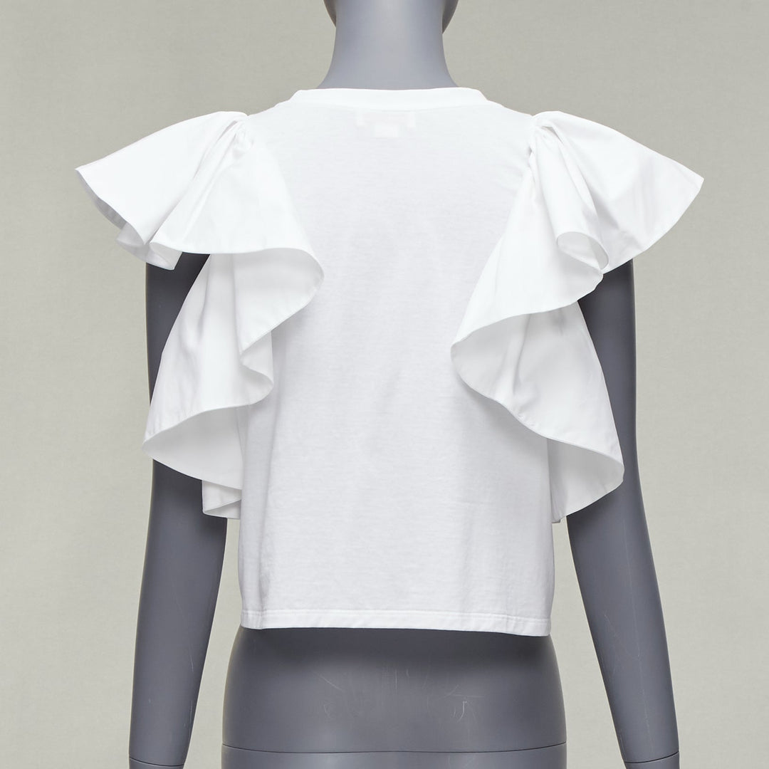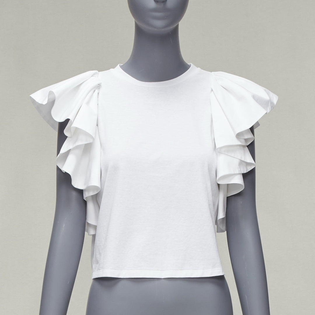 ALEXANDER MCQUEEN white cotton ruffle sleeve crew neck crop top IT38 XS