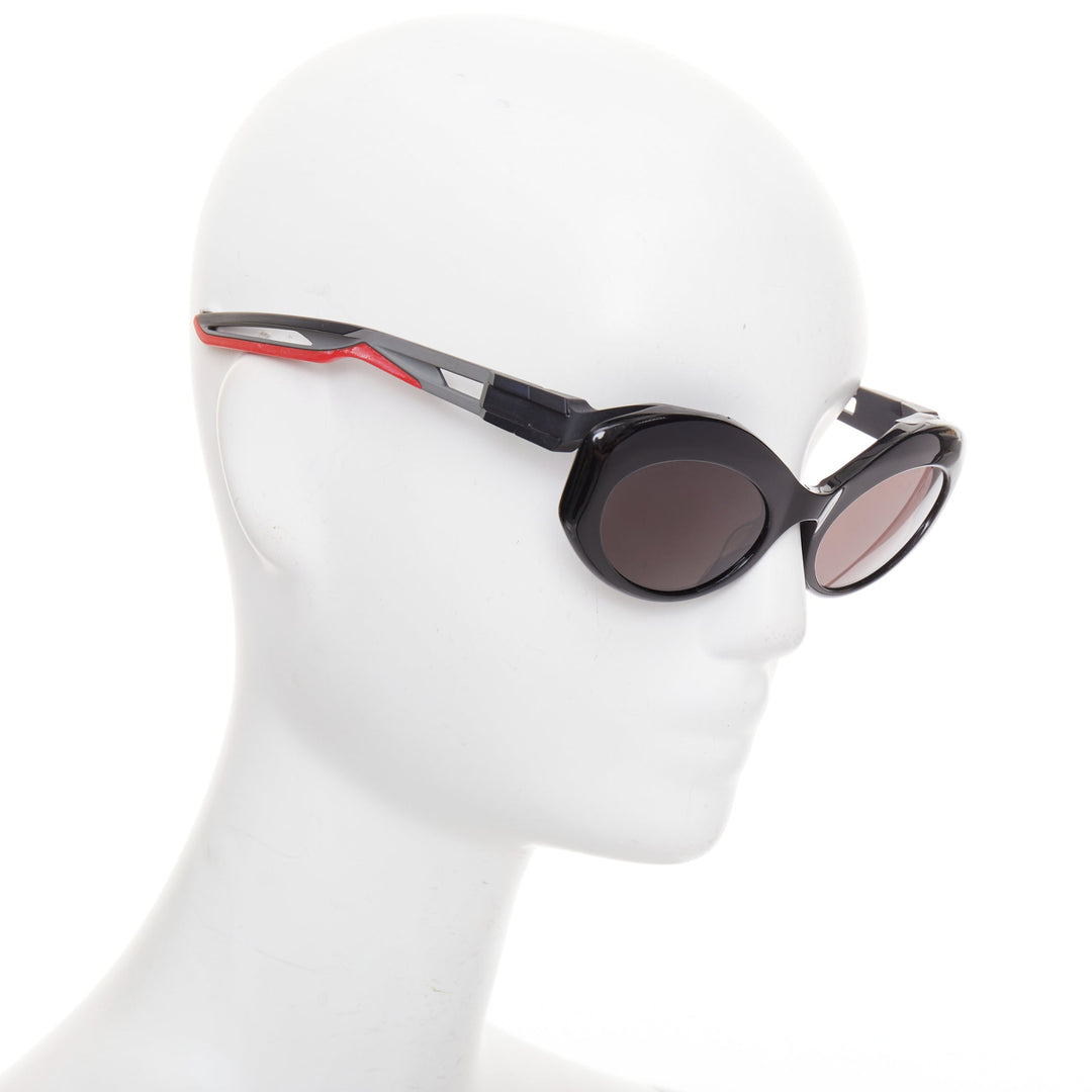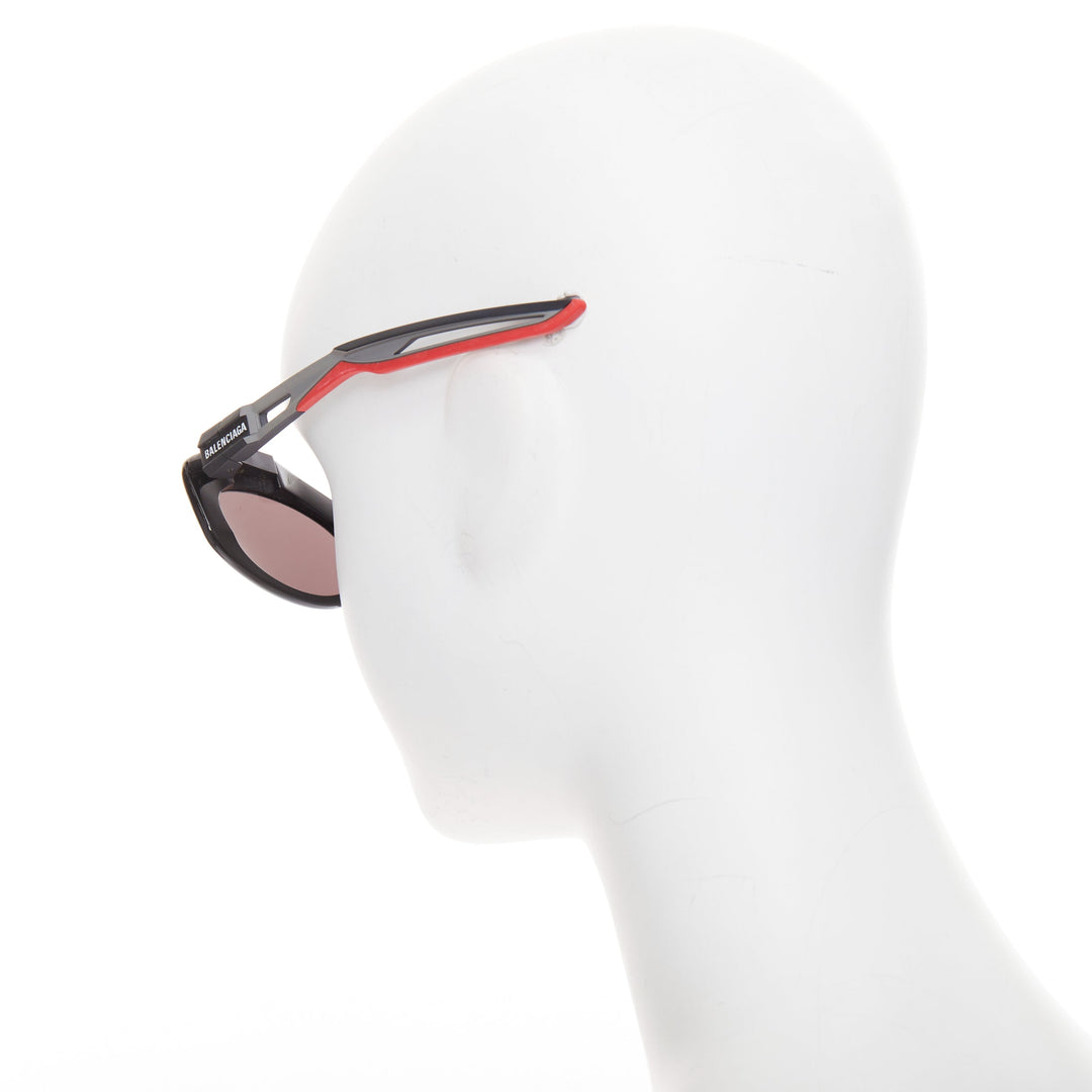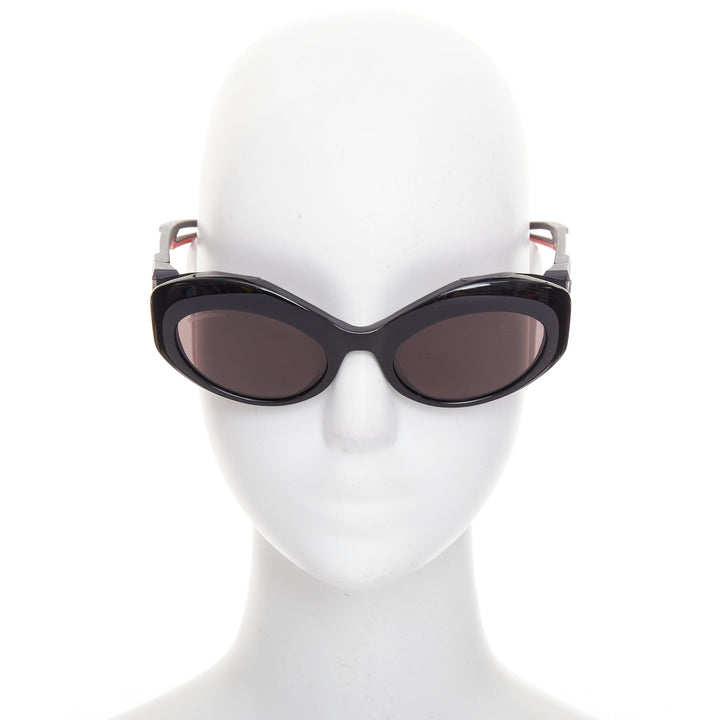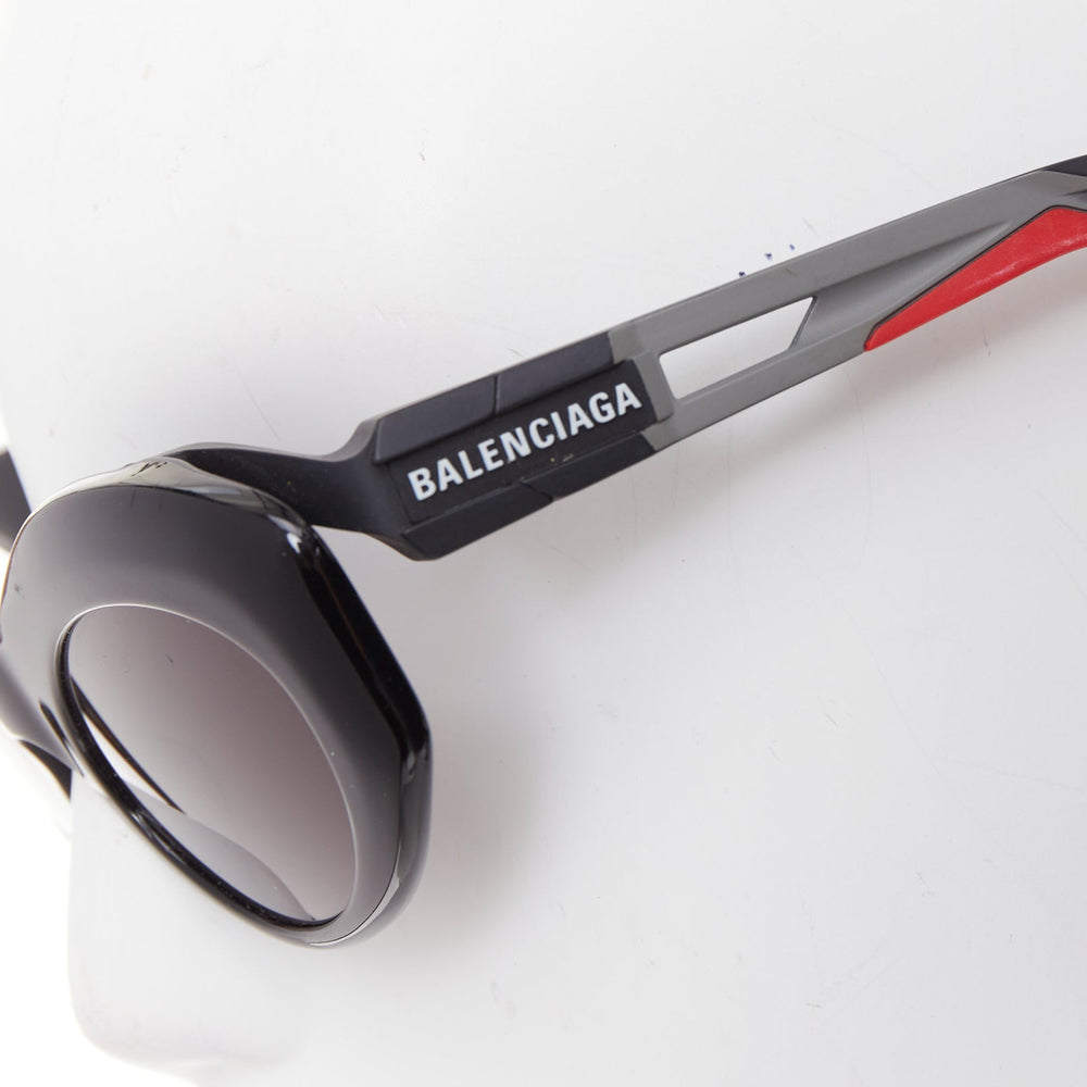 BALENCIAGA BB0053S Hybrid Oval black grey sporty rubber temple sunglasses