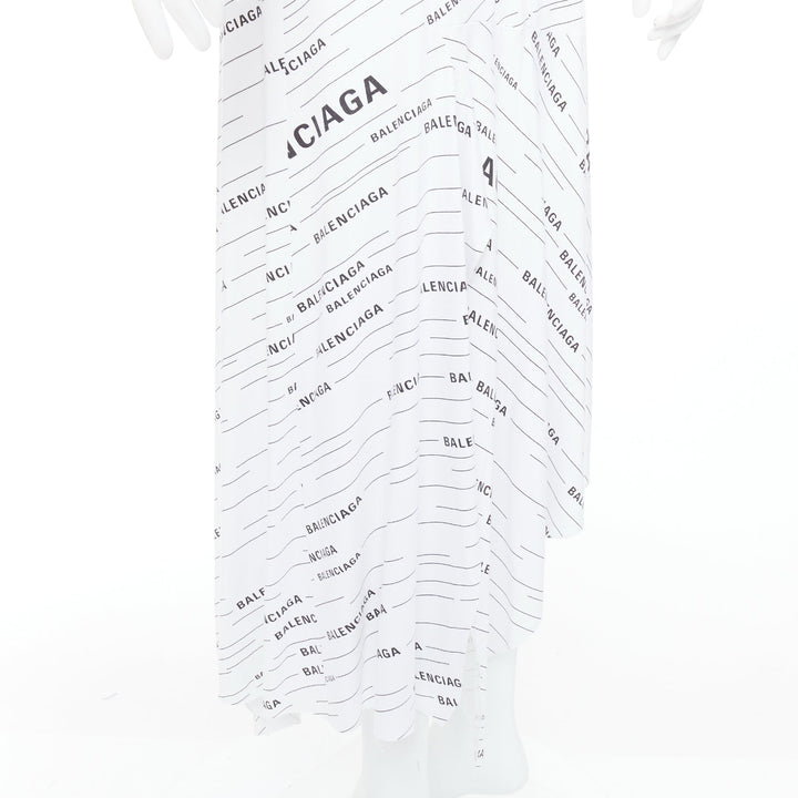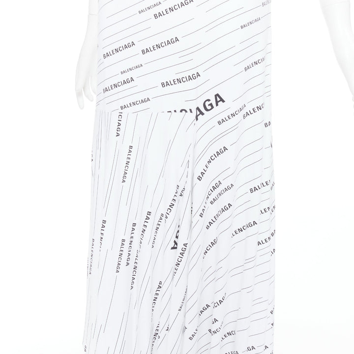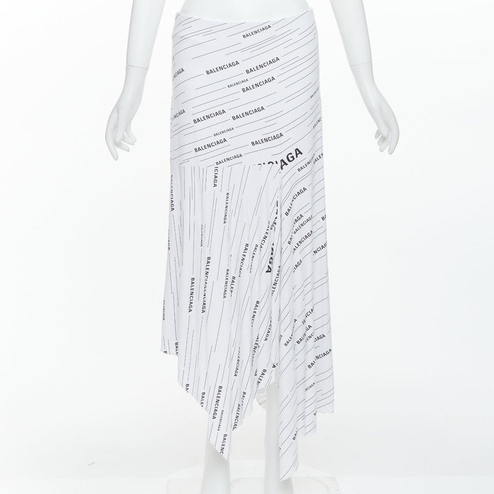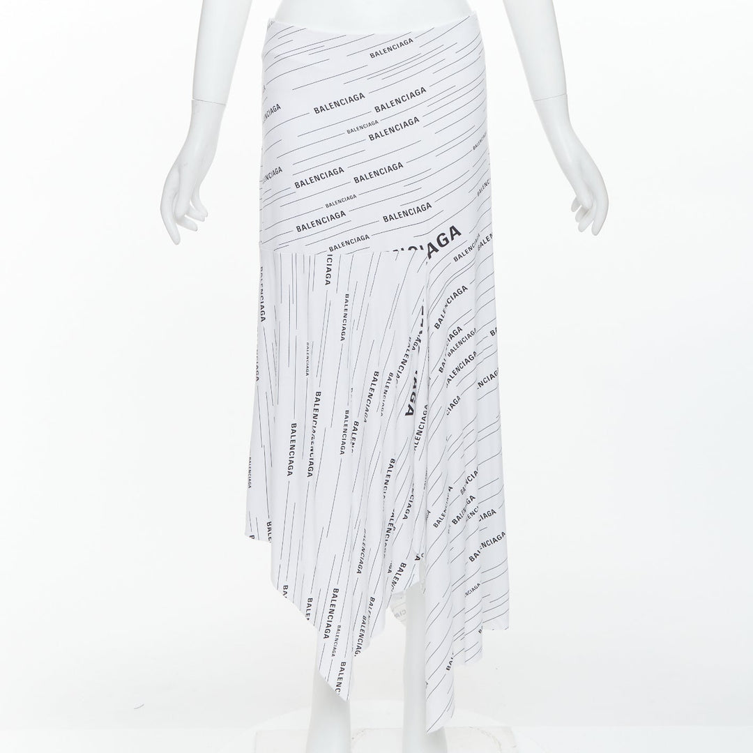 BALENCIAGA Demna 2018 white black logo print asymmetric midi skirt FR38 M