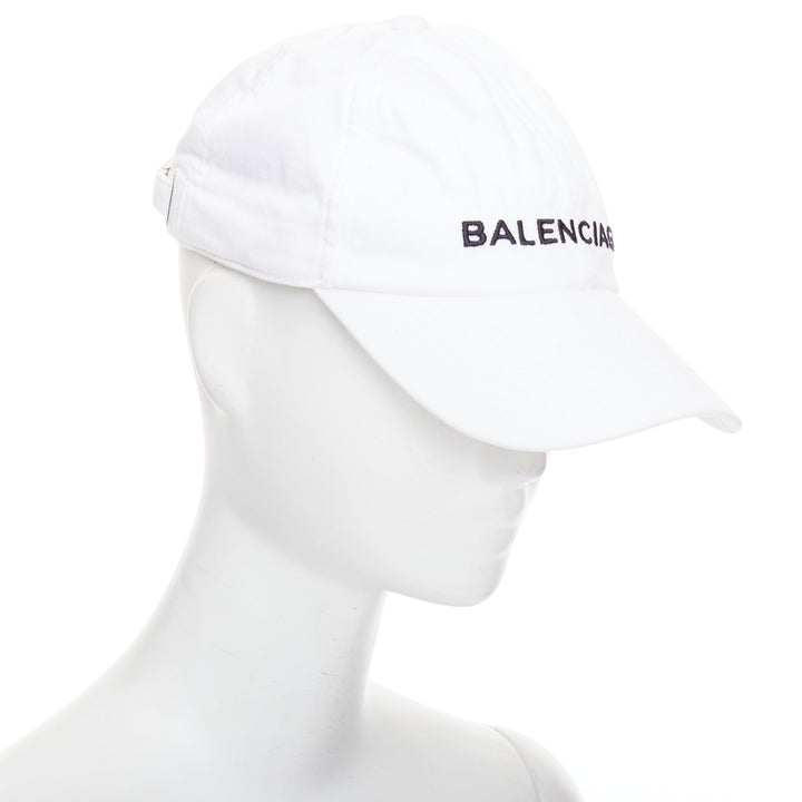BALENCIAGA white cotton black embroidered logo baseball cap L