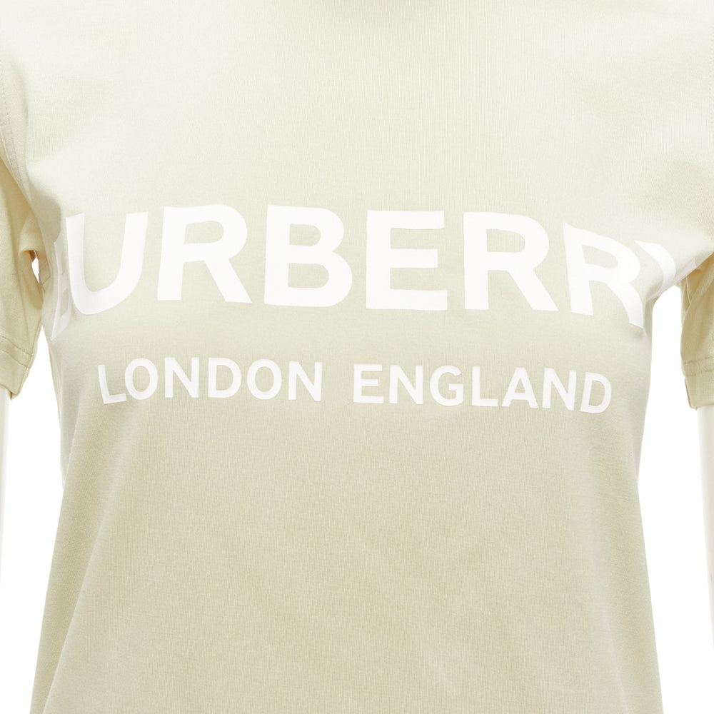 BURBERRY beige cotton white logo print slim fit short sleeve tshirt XS