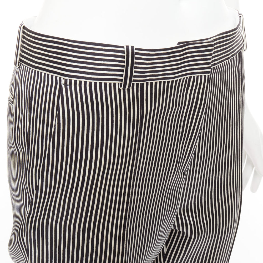 CELINE Phoebe Philo cream black silk new pure wool striped trousers FR36 S