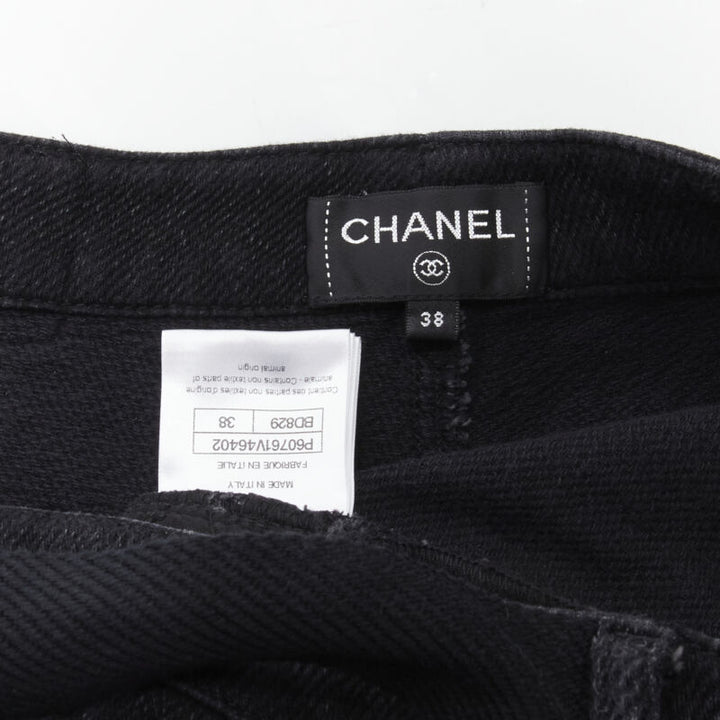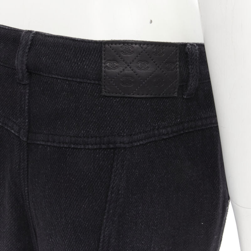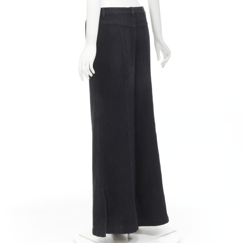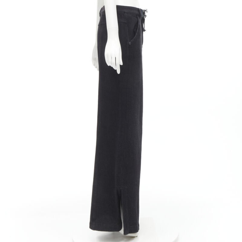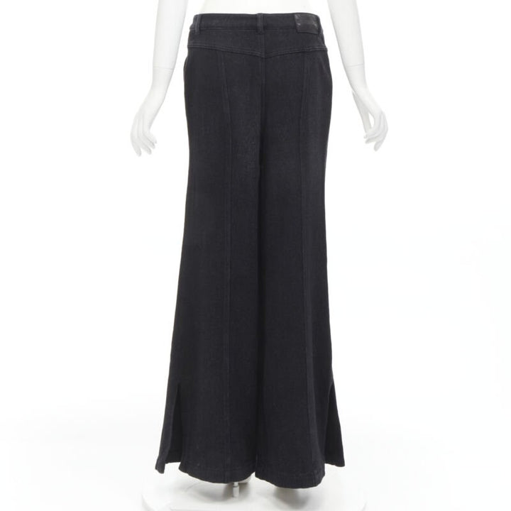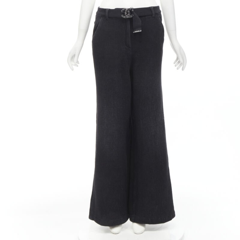 CHANEL Runway cotton black CC chain buckle belt wide leg bell bottom pants FR38 M