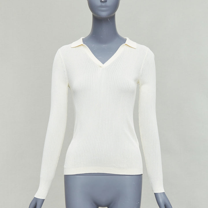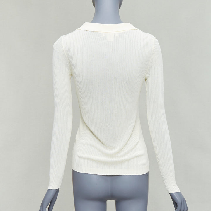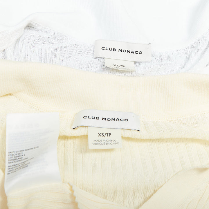 CLUB MONACO Set of 2 white cream ribbed collared polo top XS