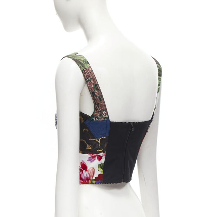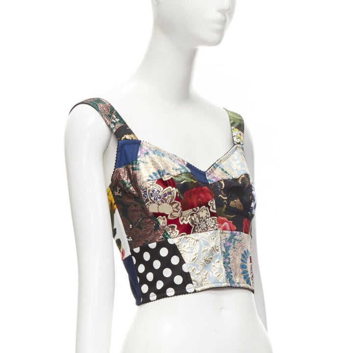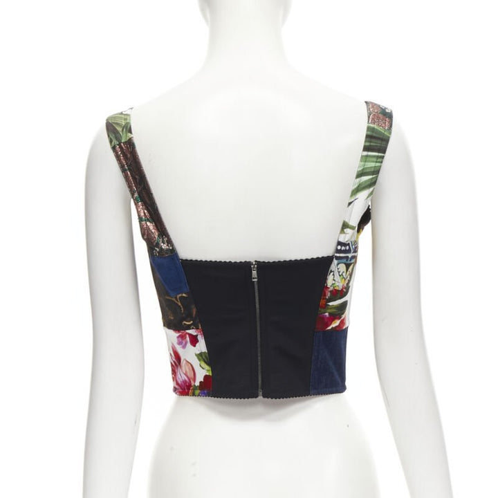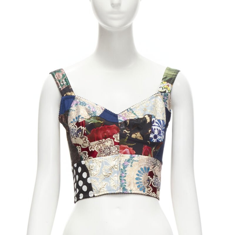 DOLCE GABBANA 2021 Sicilian Patchwork metallic jacquard boned bustier IT38 XS
