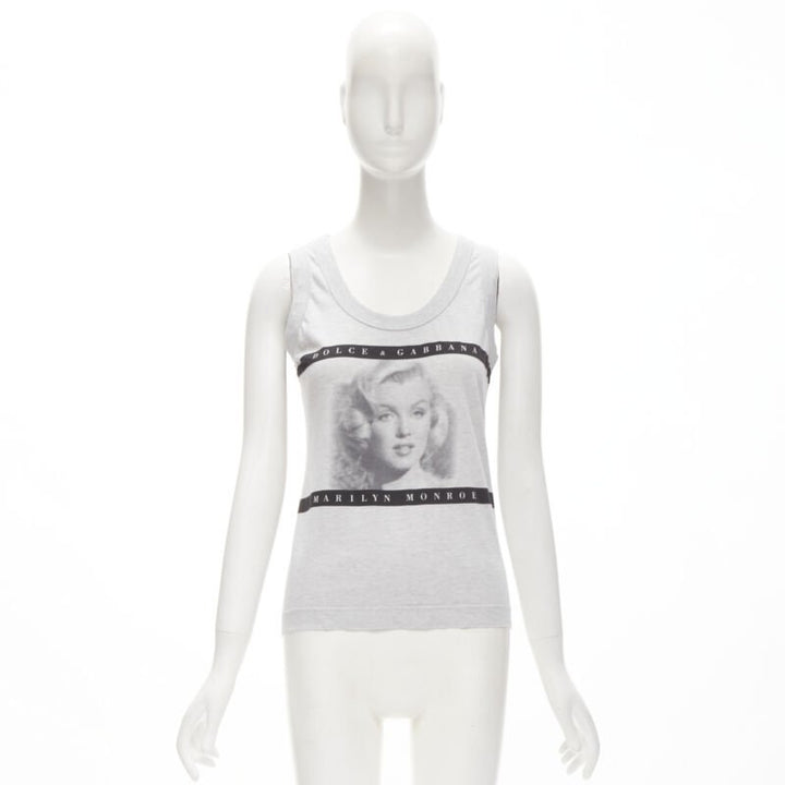 DOLCE GABBANA Vintage Cinematic Actress Y2K print grey tank top IT38 XS