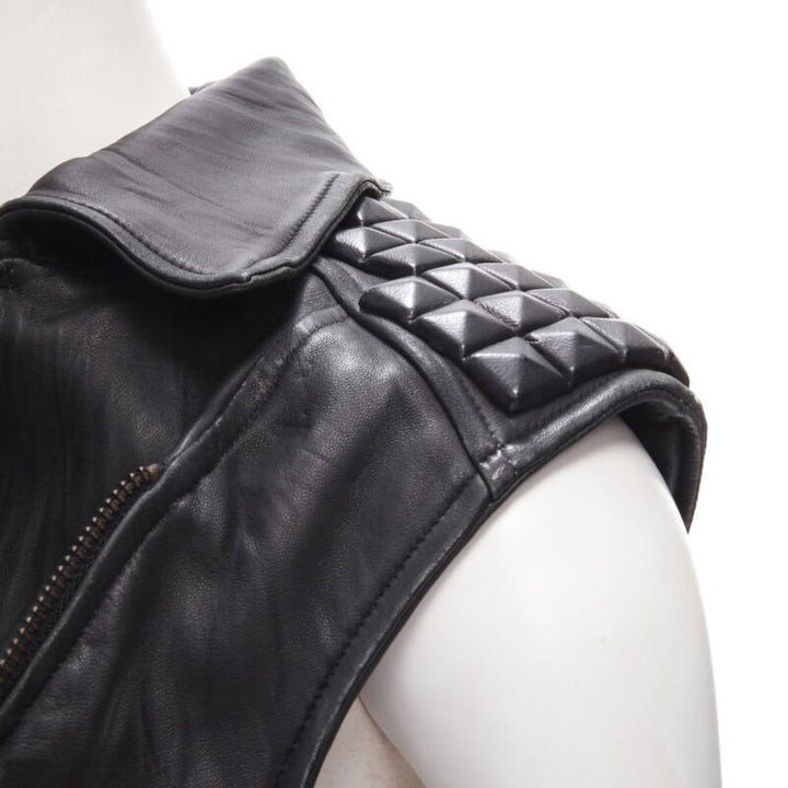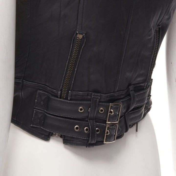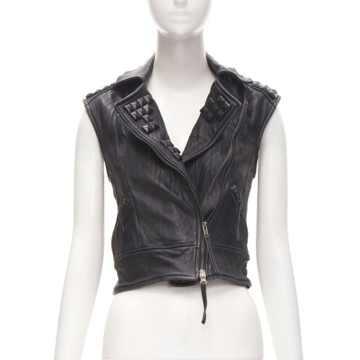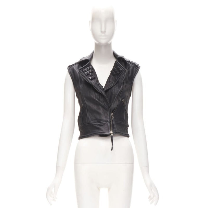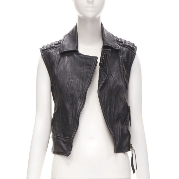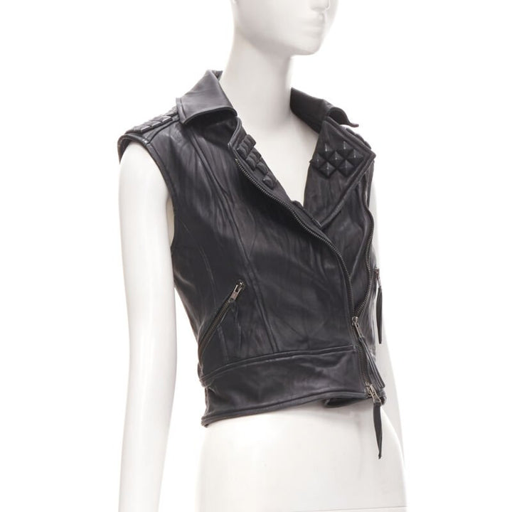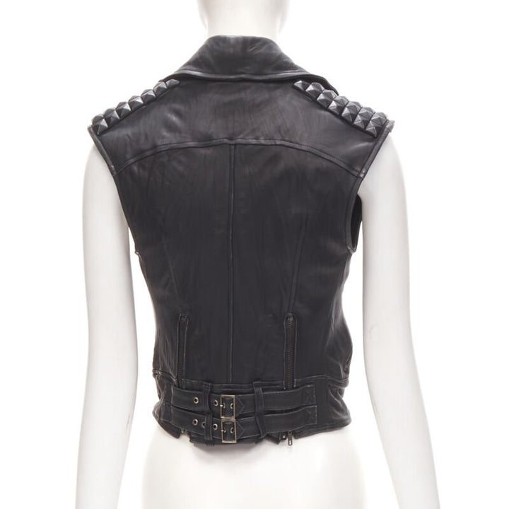 ELIZABETH JAMES black leather wrapped square stud biker vest jacket XS