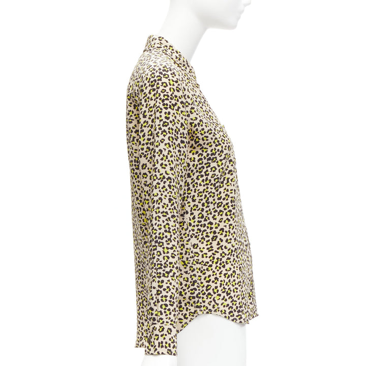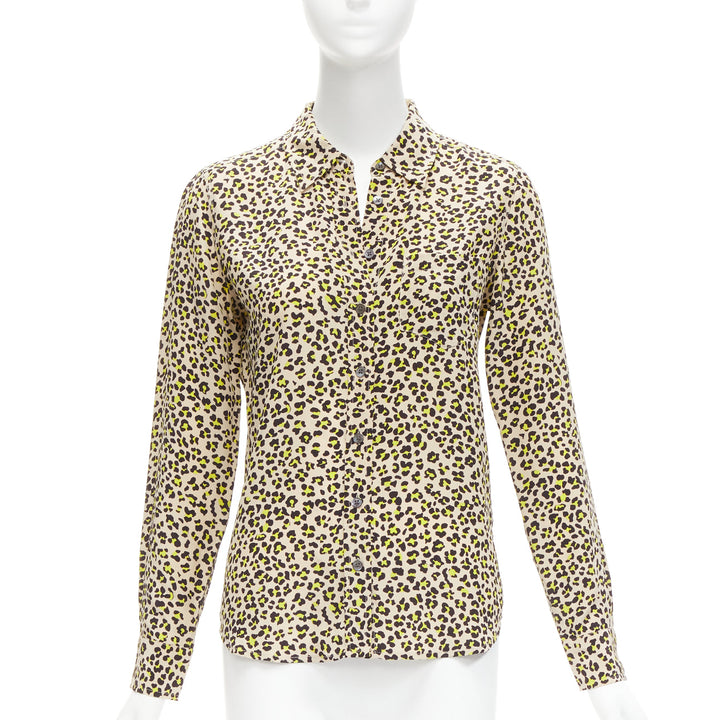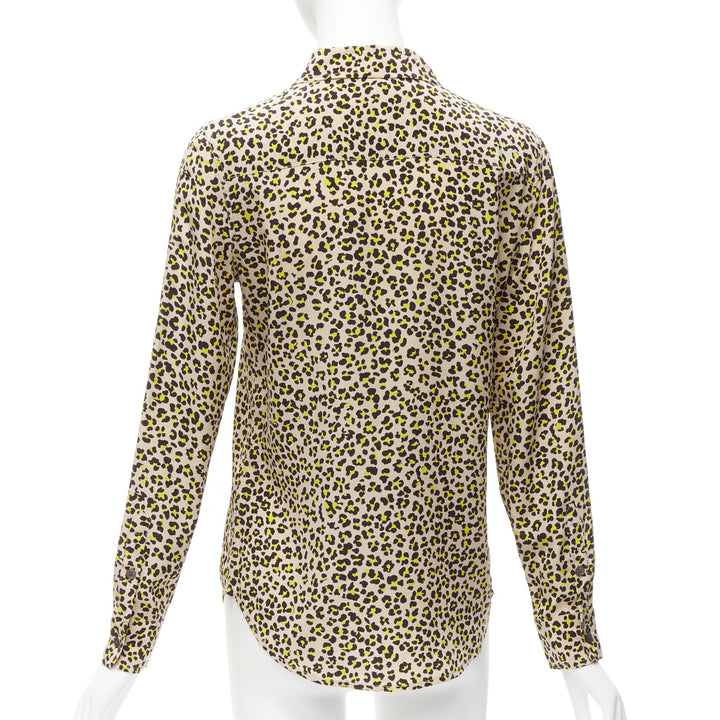EQUIPMENT 100% silk brown black leopard print long sleeve shirt XS