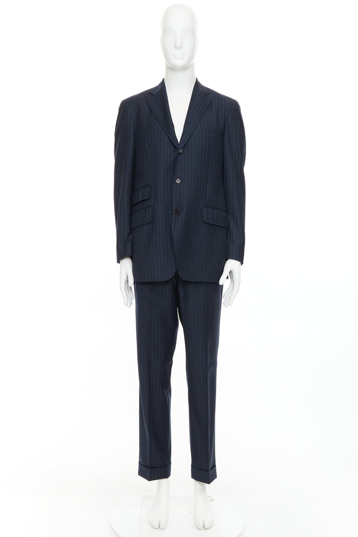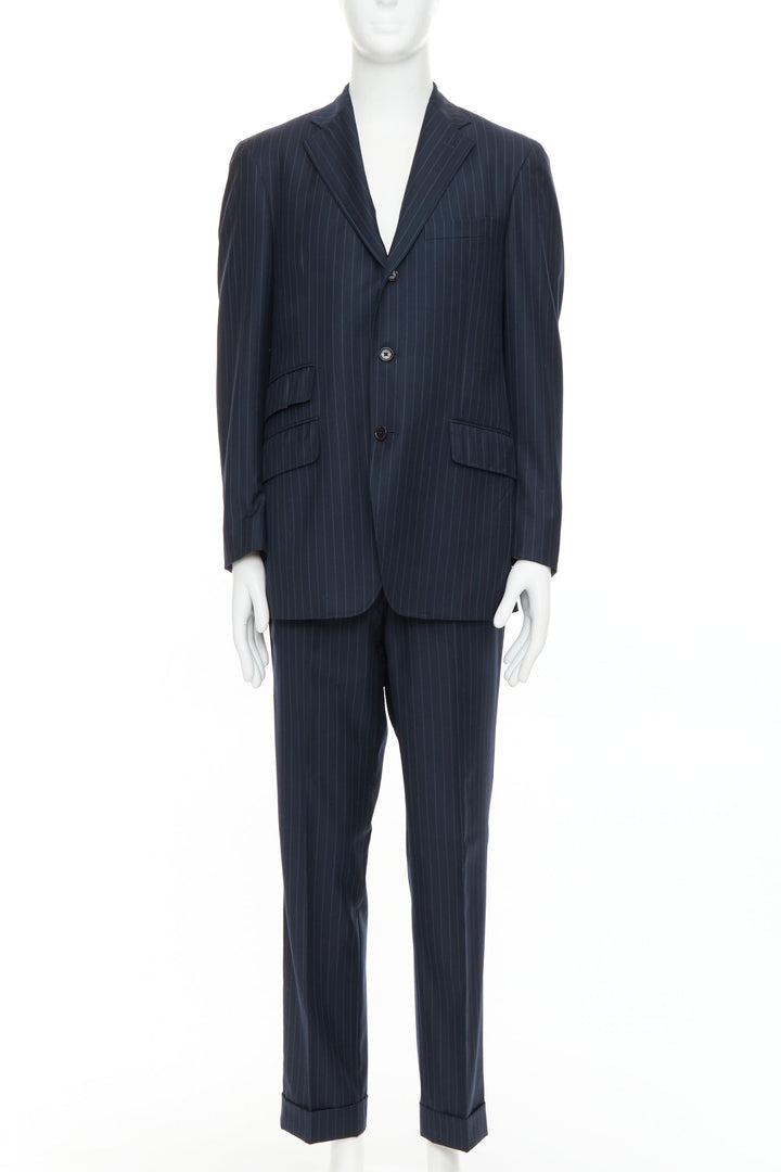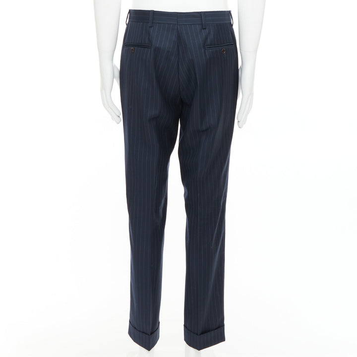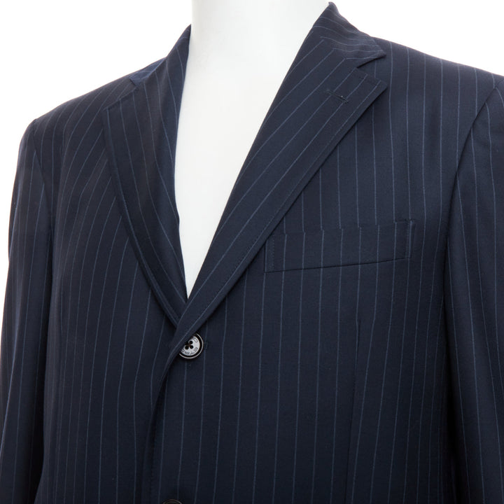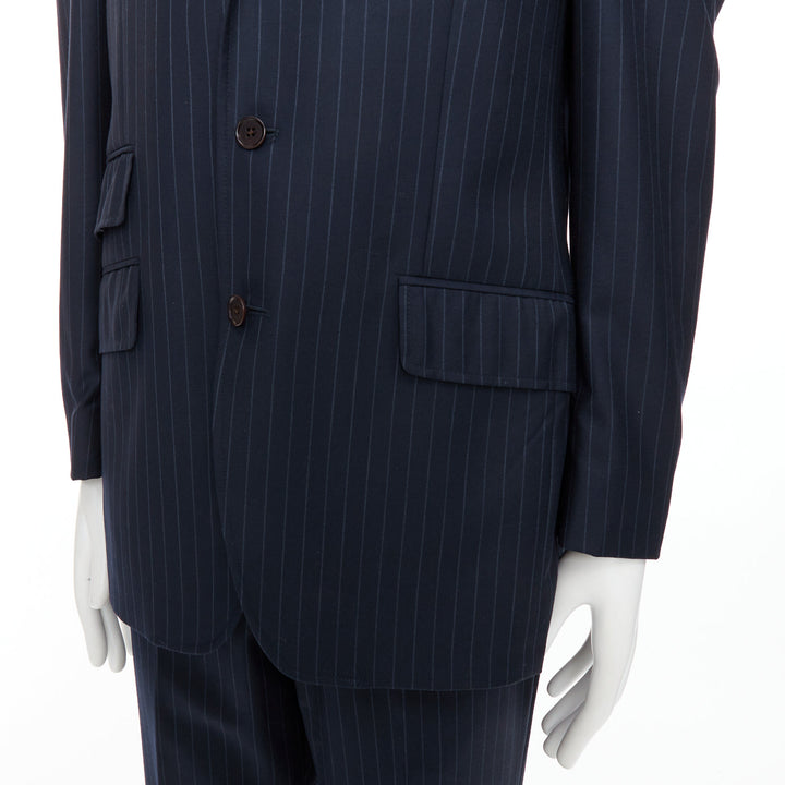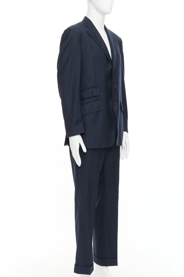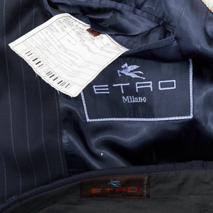 ETRO navy pinstripe 100% wool single breasted cropped blazer jacket IT50 L