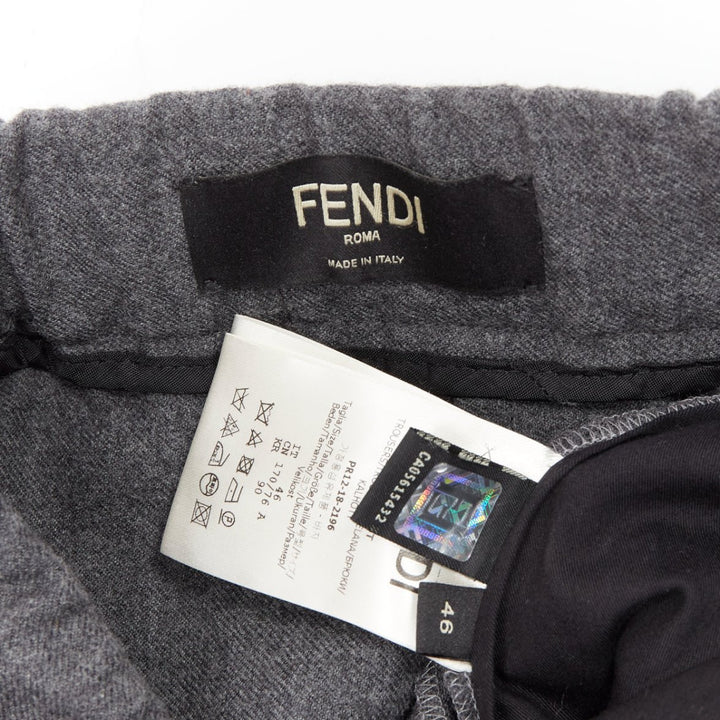 FENDI 100% virgin wool grey drawstring waistband casual dress trousers IT46 S