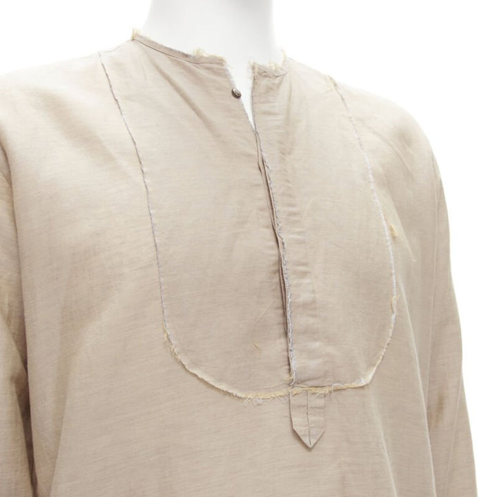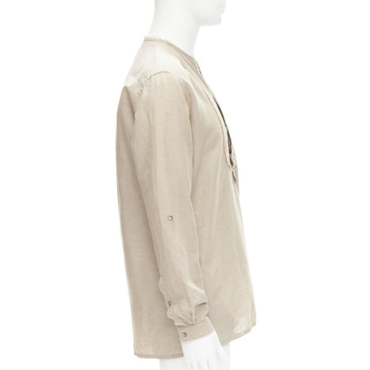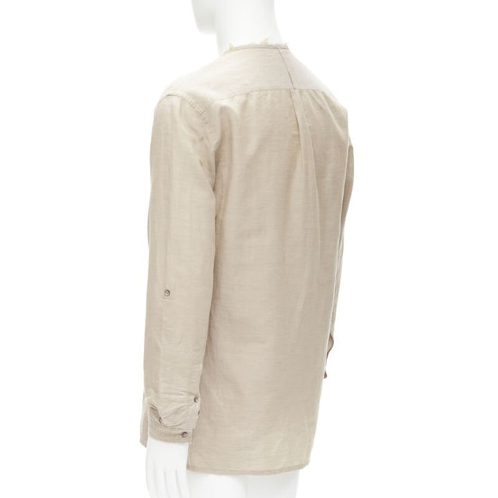 FENDI beige linen cotton raw frayed half button long sleeve shirt EU40 L