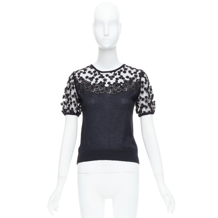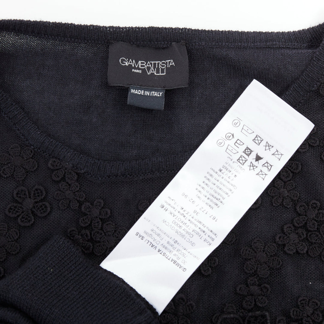 GIAMBATTISTA VALLI black cashmere silk floral sheer lace panel sweater IT38 XS