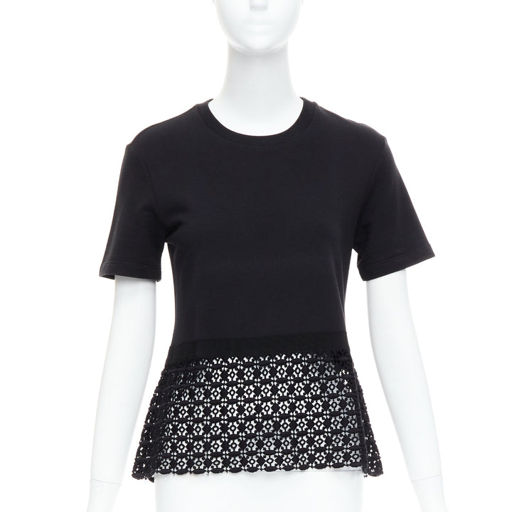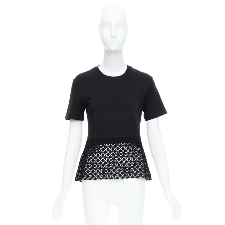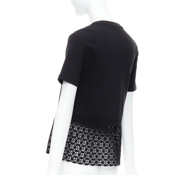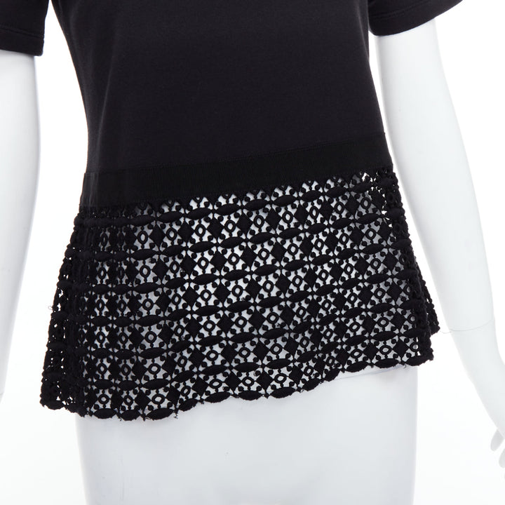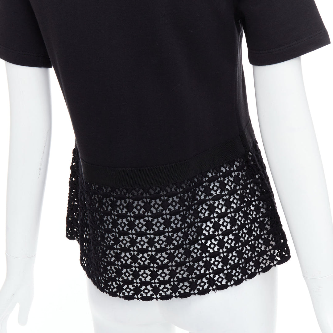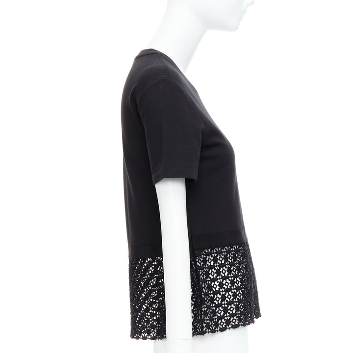 GIAMBATTISTA VALLI black cotton geometric lace hem tshirt IT38 XXS