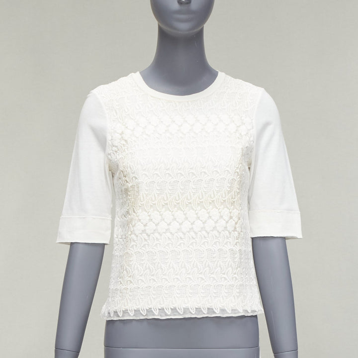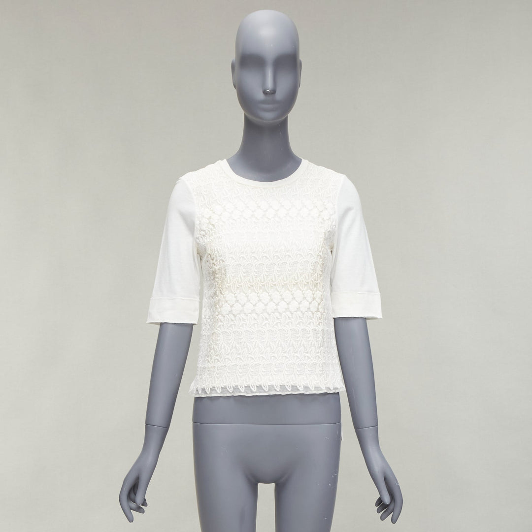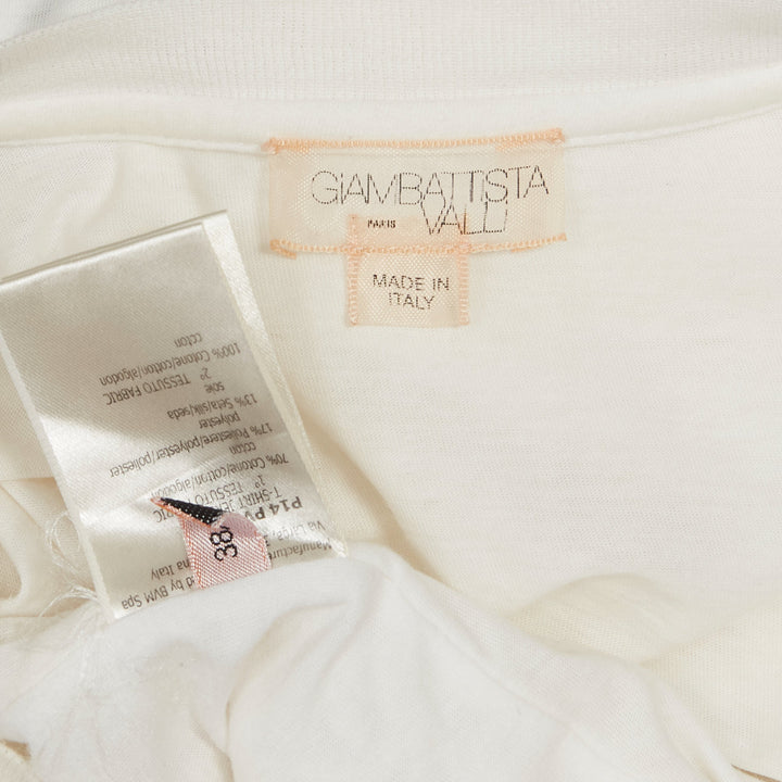 GIAMBATTISTA VALLI white cotton blend lace overlay front tshirt IT38 XS