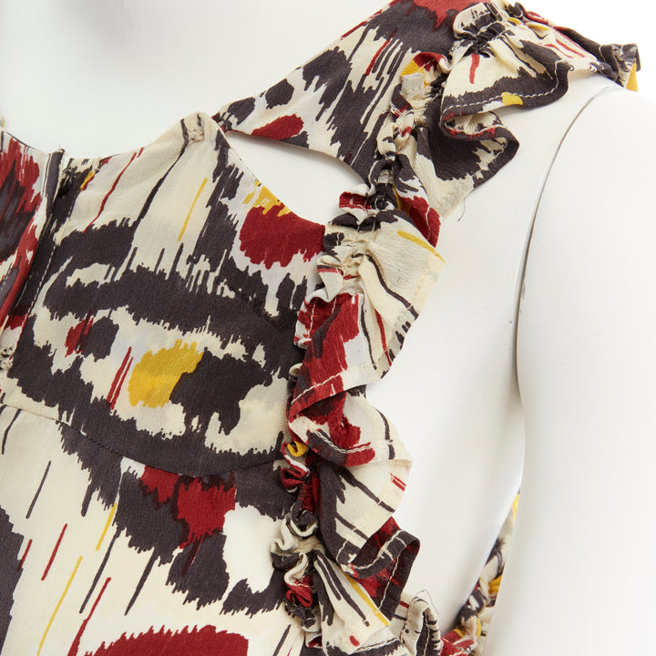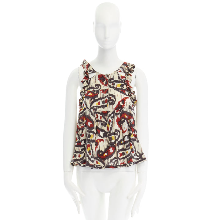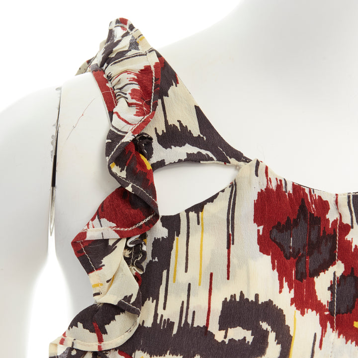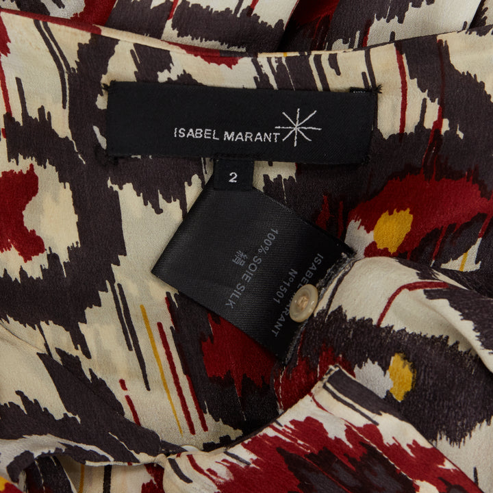 ISABEL MARANT Ikat cream ethnic print silk ruffle cut-out top FR34 XS US2 UK6